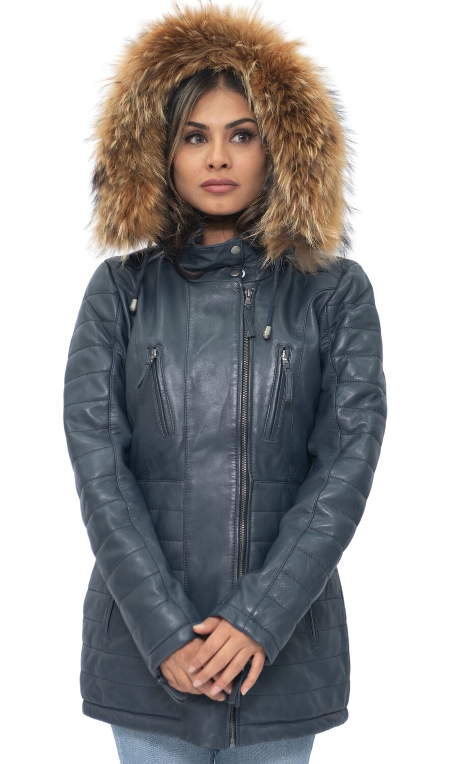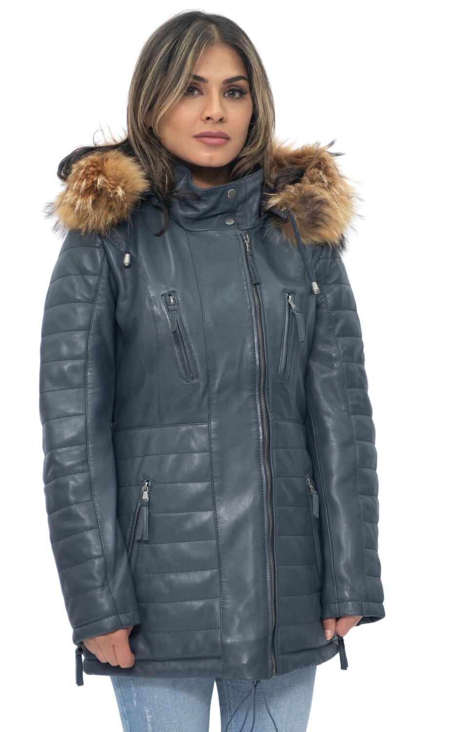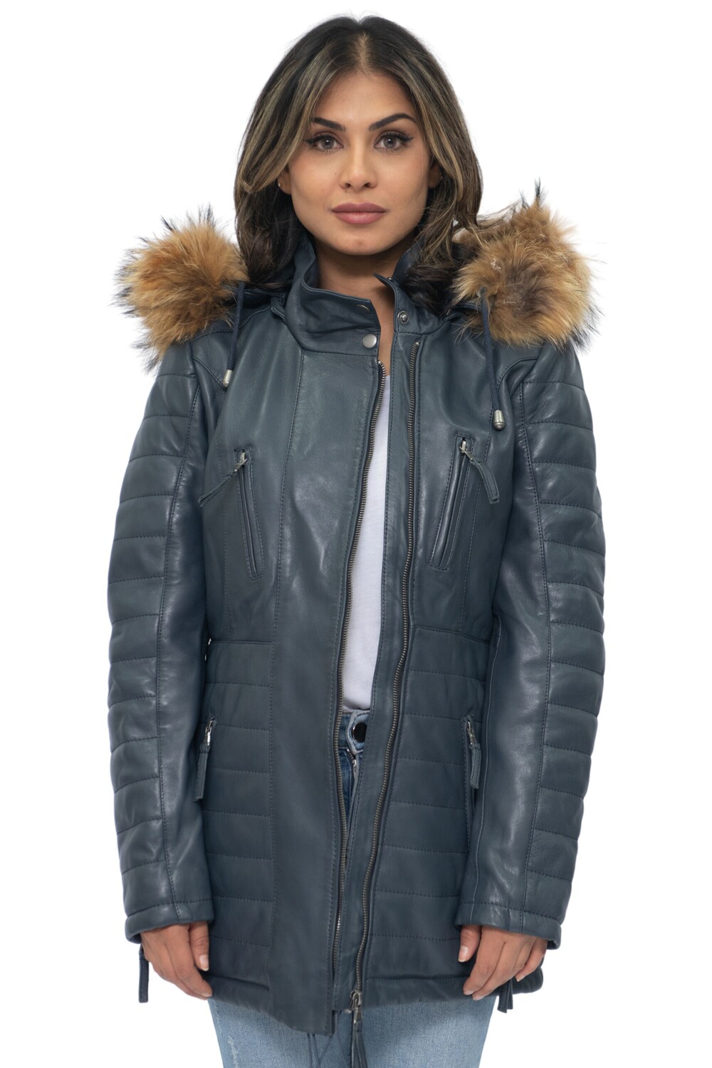 Эта облегающая куртка-парка — отличный выбор для холодной погоды. Он оснащен съемным капюшоном с меховой отделкой, который не только сохраняет тепло, но и придает этой одежде игривый вид. Передняя часть куртки имеет четыре кармана на молнии с язычками для легкого открытия. Дополнительные стеганые детали также присутствуют на рукавах и талии куртки, создавая роскошный дизайн, подчеркивающий гладкую эстетику нашей премиальной отделки наппа. Высокий воротник, закрывающийся на кнопки, дополняет куртку и станет шикарным дополнением вашего зимнего гардероба. • 100% высококачественная ультрамягкая кожа наппа. • Со съемным меховым капюшоном, четырьмя карманами на молнии и манжетами на молнии. • Высокий воротник-стойка со стегаными деталями на поясе и рукавах куртки.