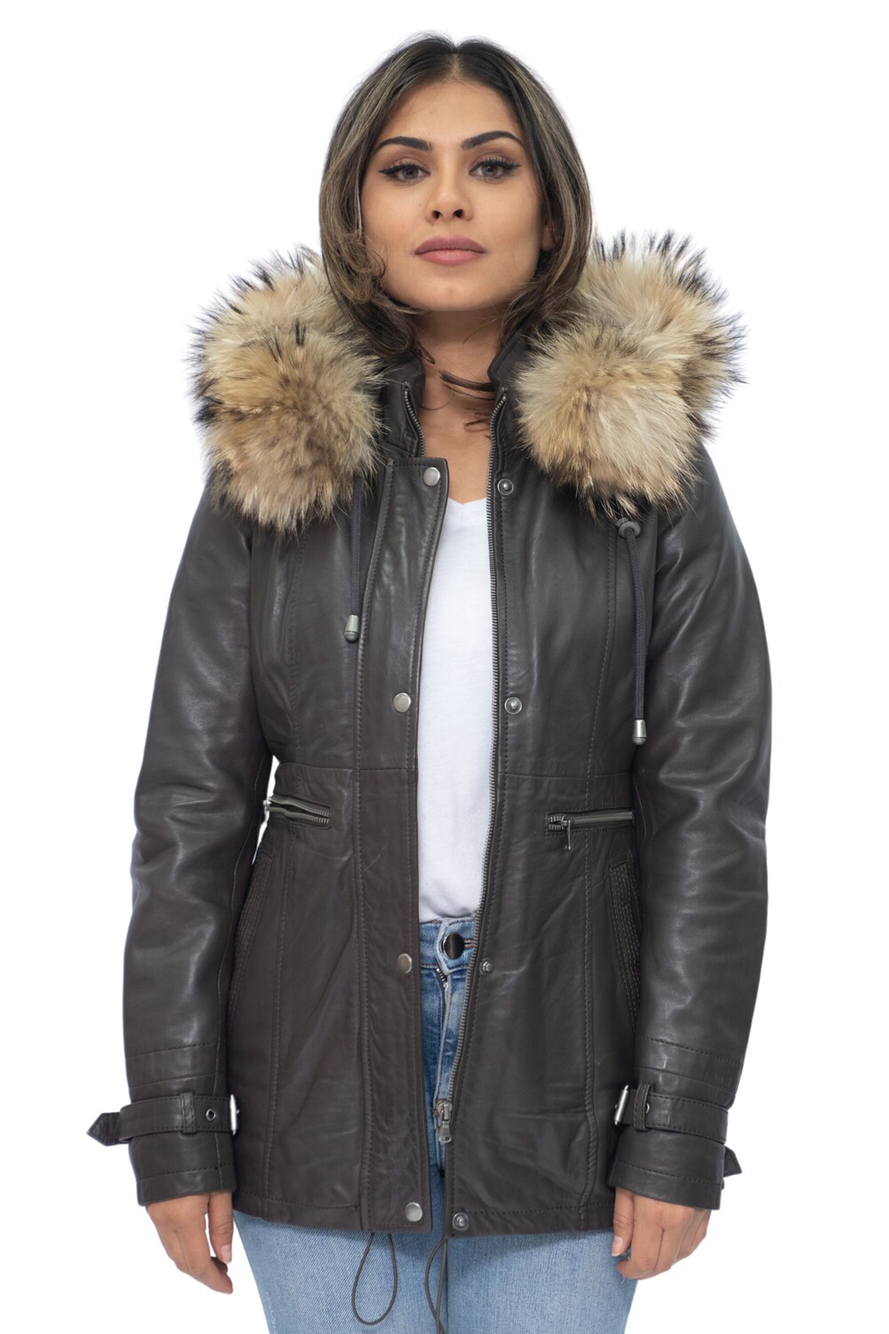 Шикарная парка, которая выглядит более обтекаемо, чем наш брюссельский стиль, для тех, кто предпочитает более минималистскую и утонченную моду. Эта куртка с капюшоном на меховой подкладке идеально подходит для зимней одежды благодаря своей теплоте и комфорту. В то же время это стильное дополнение к этому изделию. Эта куртка имеет пуговицу поверх молнии YKK, что придает ей более классический вид. Мы также добавили пряжки к манжетам, чтобы их можно было регулировать, а рукава оставались дышащими в течение всего дня. Мы также добавили две удлиненные горизонтальные молнии, проходящие через талию, чтобы обеспечить достаточно места для хранения вещей. • 100% высококачественная ультрамягкая кожа наппа. • Со съемным меховым капюшоном, двумя большими внешними карманами и регулируемыми манжетами. • Высокий воротник-воронка, закрывающийся на молнию YKK во всю длину.
