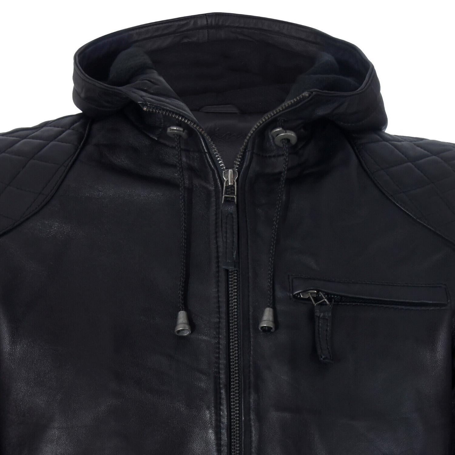 Байкерская куртка-бомбер из кожи с капюшоном и молнией Infinity Leather, черный