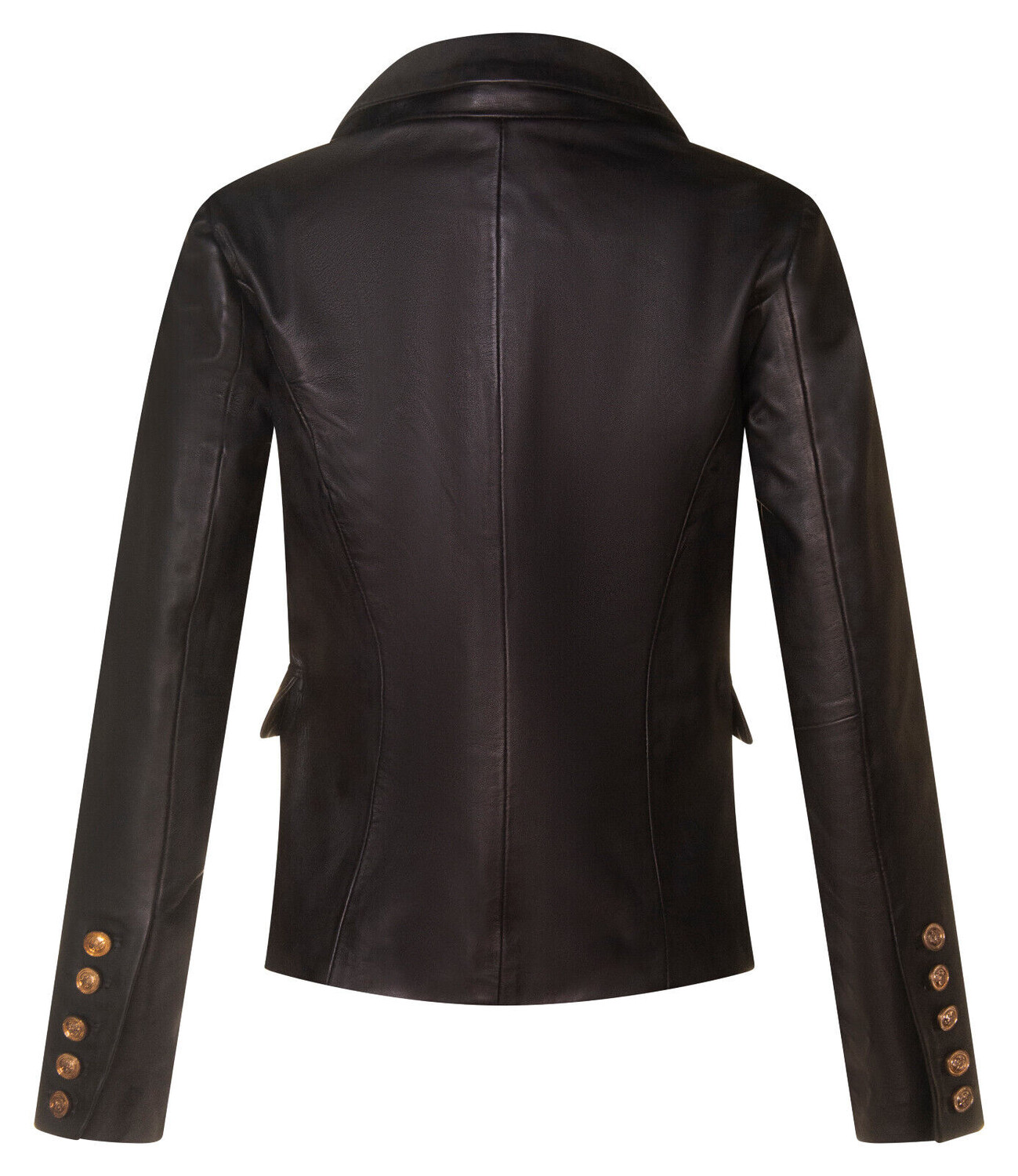 Сделайте смелое заявление о моде с помощью нашего кожаного женского пиджака в стиле милитари, идеального сочетания утонченности и стиля. Эта куртка, изготовленная из мягкой и эластичной кожи наппа ягненка, создает ощущение роскоши и комфорта. Что отличает его: Роскошная кожа наппа ягненка: Мягкая и эластичная кожа наппа ягненка создает ощущение комфорта и роскоши, обеспечивая одновременно стиль и комфорт. Функциональные карманы на талии: два внешних набедренных кармана обеспечивают функциональность и стиль, позволяя легко носить с собой все необходимое. Элегантный двубортный дизайн. Двубортный дизайн излучает элегантность в стиле милитари, что делает этот пиджак эффектным. Элегантный воротник: воротник имеет зубчатый лацкан, который придает общему дизайну нотку изысканности и классического стиля. Гламурные эффектные пуговицы: кожаный женский пиджак в стиле милитари представляет собой идеальное сочетание моды и изысканности, позволяющее вам выглядеть уверенно и стильно.