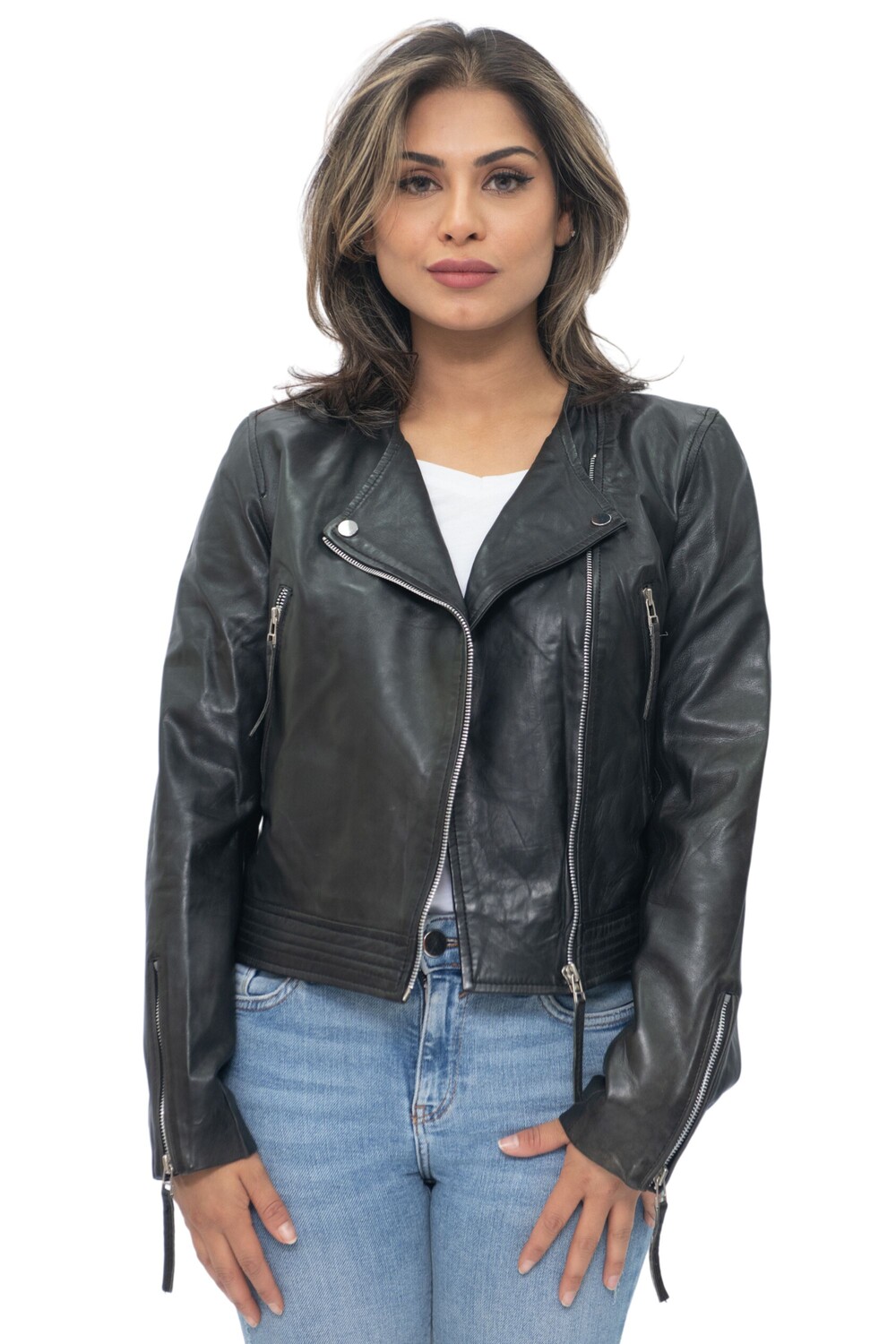 Эта куртка без воротника представляет собой уникальную интерпретацию популярного байкерского стиля. Мы разработали эту куртку приталенной и более короткой, что дополняет ее эстетичный вид. Чтобы сделать куртку еще более привлекательной, она имеет ребристый дизайн на передней части талии, а также два вертикальных кармана на молнии спереди для безопасного хранения ваших вещей. Эта куртка выполнена в классическом черном цвете, который хорошо сочетается со светлыми джинсами, и представлена в ярком лимонно-желтом цвете, который действительно украсит ваш наряд, когда вы попытаетесь ненадолго выйти на улицу. • 100 % ультрамягкая кожа наппа премиум-класса. • Облегающий крой, укороченная длина. • Смещенная молния YKK и отделка без воротника. • Карманы на молнии и ребристая передняя талия.