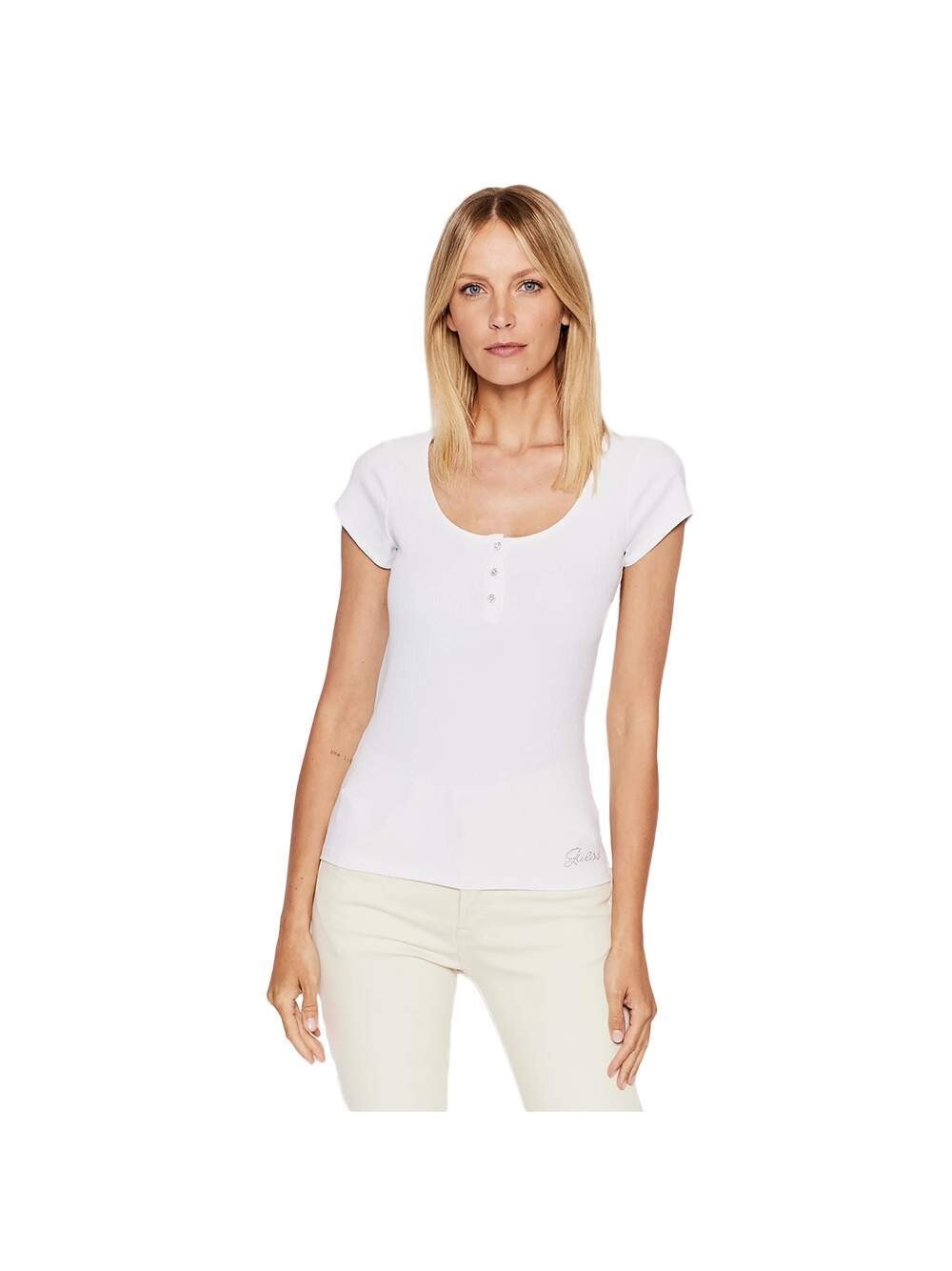 Женская футболка Guess Flashy G белая синтетика. Аутентичная одежда бренда Guess - Дизайн уличной/спортивной одежды от Guess - Guess для женской моды, идеально подходит для повседневной жизни - Футболка Guess белого цвета идеально сочетается с остальными предметами вашего гардероба - Синтетический материал удобный - классический - яркий G - .