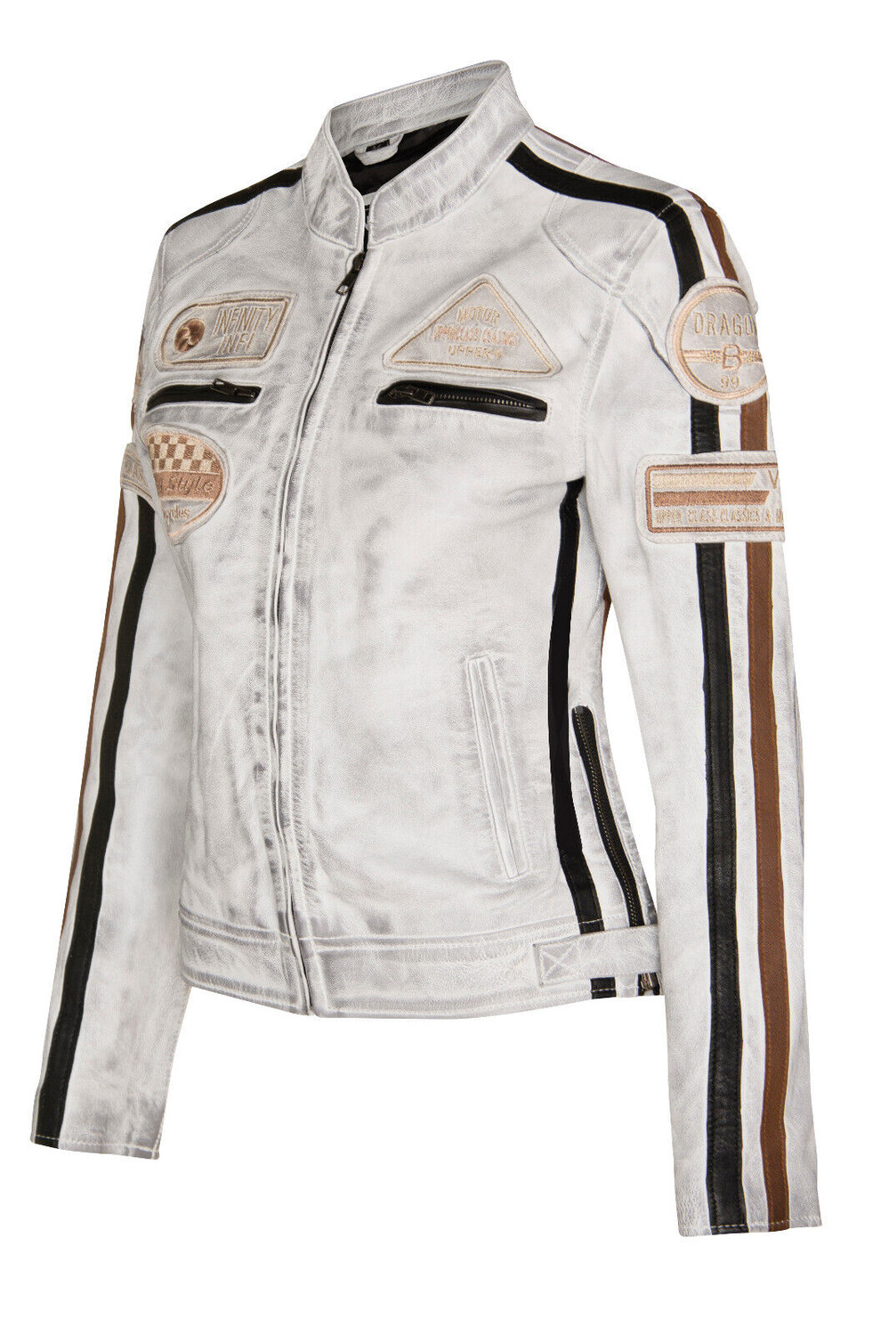 Кожаная куртка со значком байкерских гонок agadir Infinity Leather, белый