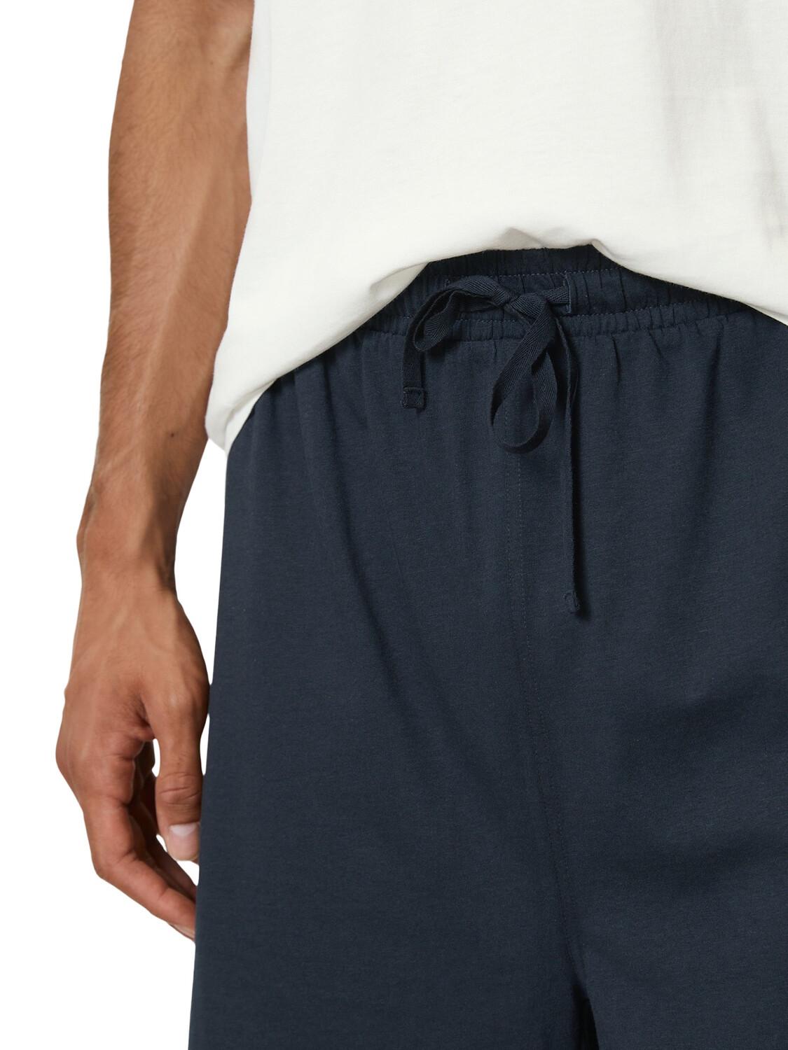 Эта мужская пижама, состоящая из двух частей, обеспечивает идеальный комфорт для спокойного сна. Верх имеет круглый вырез и заниженную линию плеч для свободной и удобной посадки. Прямой низ и принт с логотипом спереди придают пижаме современный вид. Шорты имеют эластичный пояс и кулиску на поясе, что обеспечивает оптимальную посадку. Эта пижама изготовлена из мягкого, дышащего материала и удобна в ношении. Эта пижама идеально подходит для теплых летних ночей или уютных часов дома. Это идеальный выбор для мужчин, заботящихся о стиле.