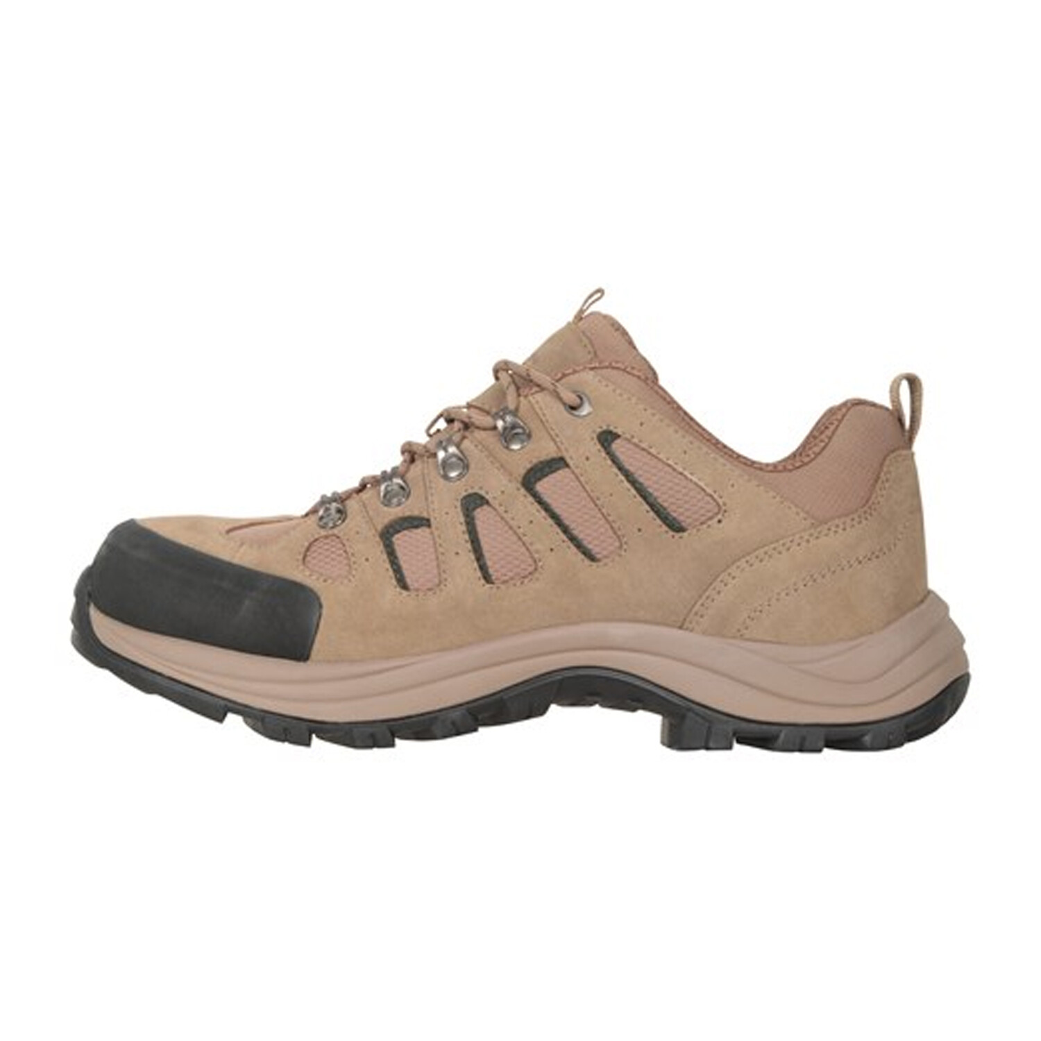 Материал верха: сетка, замша. Бренд: Mountain Warehouse. Материал подкладки: сетчатый материал. Подошва: мягкая, Phylon. Подошва: глубокая шиповка Vibram. Люверсы: 5. Технология ткани: дышащая, изодрия, водонепроницаемая. Вытяжной язычок, резиновый буфер на носке. Каблук: Плоский. низкий вырез. Дизайн: логотип, надпись. Тип носка: Круглый Банджи-шнуровка.