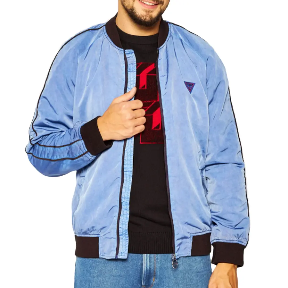 Куртка Guess с логотипом треугольник классическая мужская синяя синтетика. Аутентичная одежда бренда Guess - Дизайн уличной/спортивной одежды от Guess - Guess для мужской моды, идеально подходит для повседневной жизни - Куртка Guess синего цвета идеально сочетается с остальным гардеробом - Удобный синтетический материал - классика - Классический треугольный логотип -.