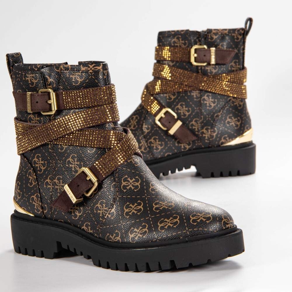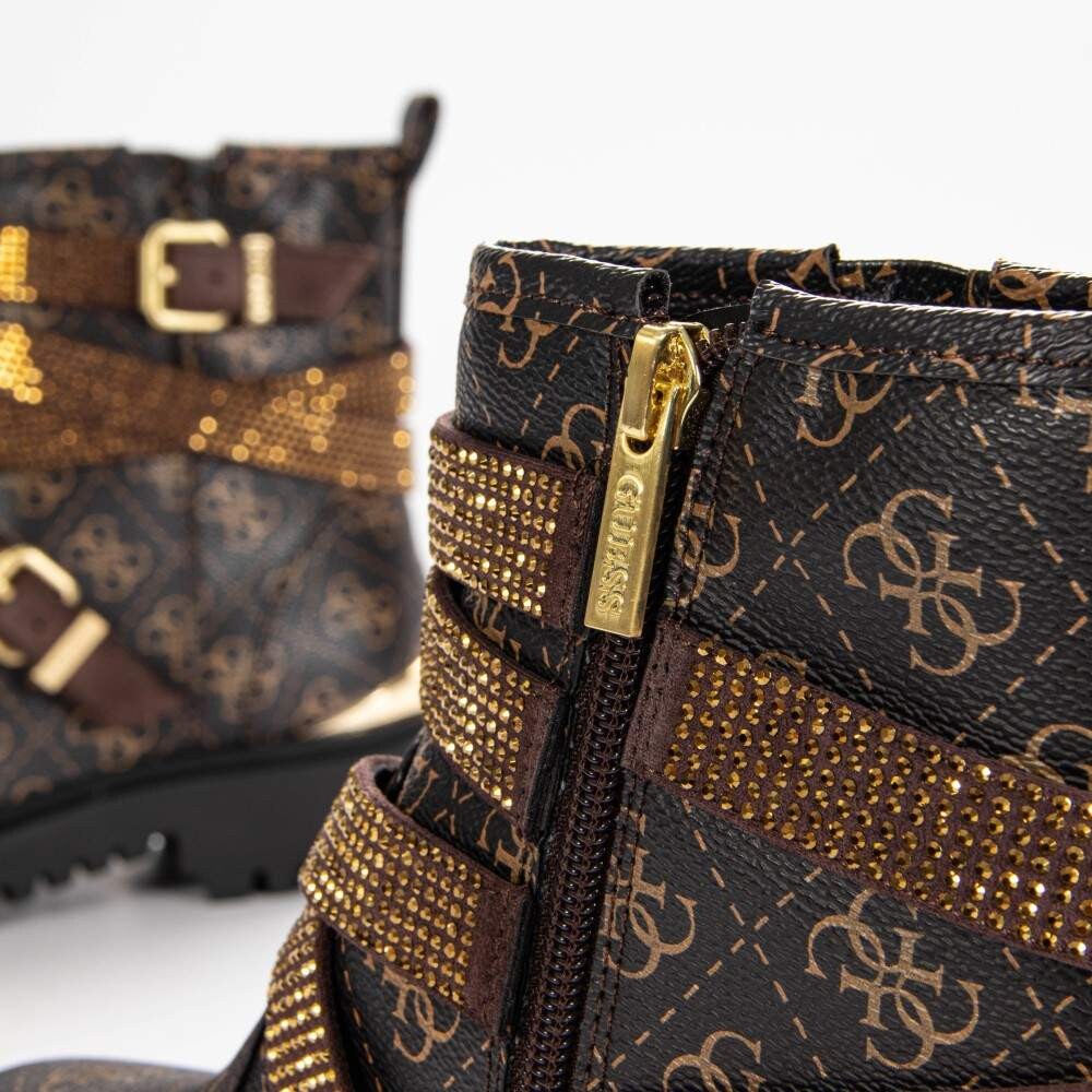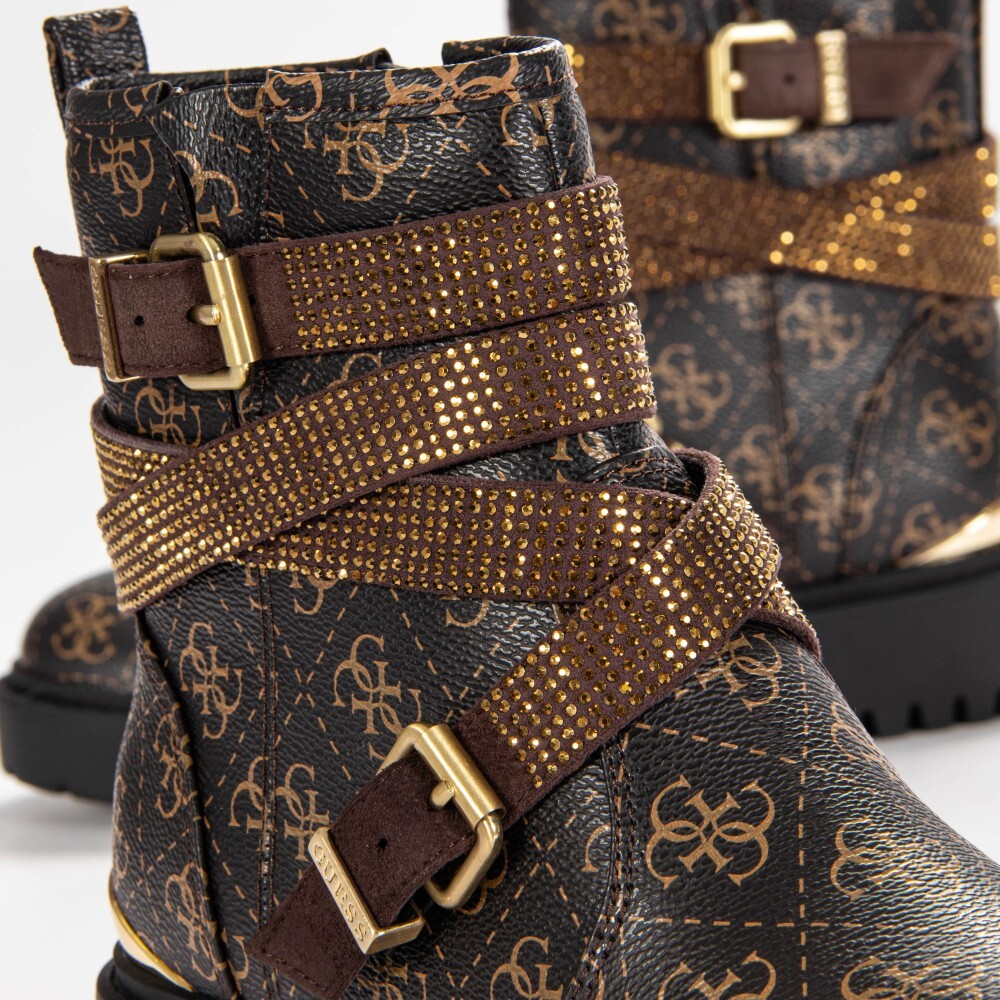 Женские ботильоны Guess Ornina коричневого цвета из кожи. Аутентичная обувь бренда Guess - дизайн уличной/спортивной одежды от Guess - Guess для женской моды, идеально подходит для повседневной жизни - Сапоги Guess коричневого цвета идеально сочетаются с остальной частью вашего гардероба - удобный кожаный материал - классическая молния - Ornina - текстиль