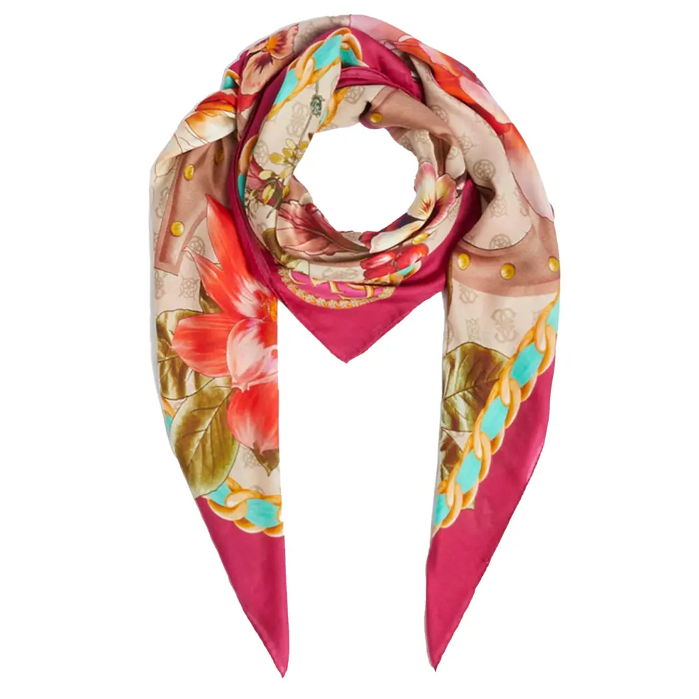 Женский шарф Guess Flowers из хлопка розового цвета. Аутентичный аксессуар от бренда Guess - дизайн уличной/спортивной одежды от Guess - Guess для женской моды, идеально подходит для повседневной жизни - Шарф Guess розового цвета идеально сочетается с остальной частью вашего гардероба - материал хлопок, удобный - классический - цветы -.