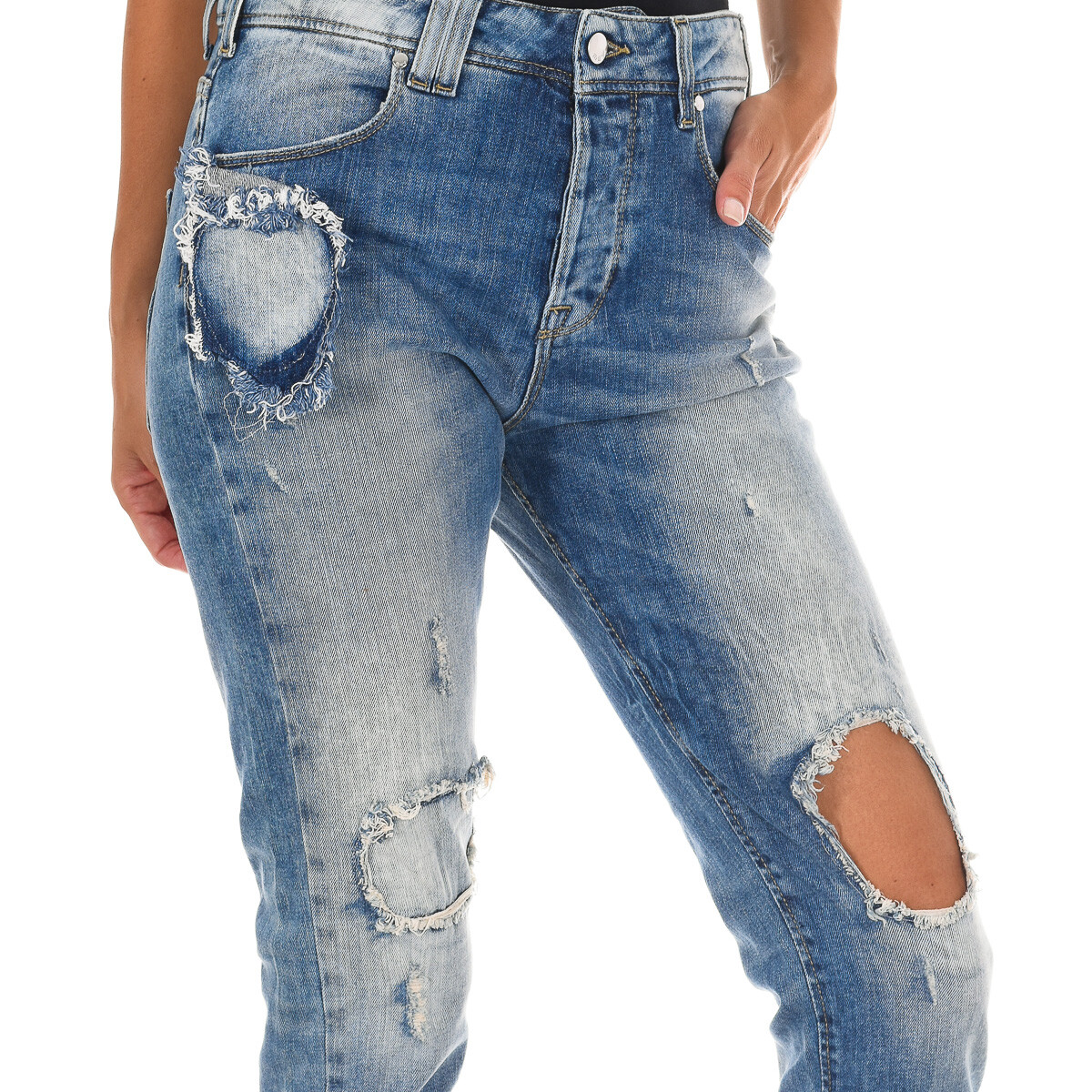 Длинные джинсовые брюки. Талия с петлями для ремня. Застежка на пуговицы спереди. Два кармана спереди. Два открытых кармана сзади с металлическим логотипом. Брюки прямого кроя. Эффект потертости. Швы рассматриваются в тон. Состав: 98% хлопок, 2% эластан. Уход: - Стирать при температуре не выше 40°C. - Гладить при средней температуре. макс. 110°С. - Позволяет использовать сушилку. - Не используйте отбеливатель. - Нельзя подвергать химической чистке.