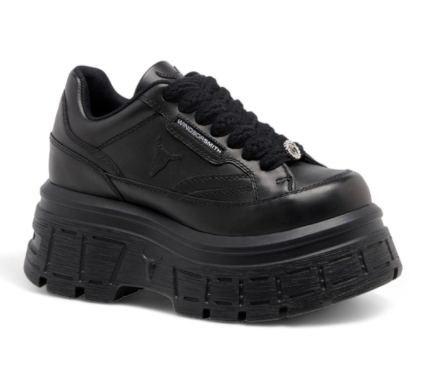 Массивные кроссовки на платформе Windsor Smith легко сочетают в себе стиль и комфорт. Эти кроссовки со шнуровкой и деталями логотипа Diamante Windsorsmith добавят изюминку любому образу. Легкая танкетка с выступами идеально подходит для повседневного ношения и обеспечивает долговечность, а мягкая линия верха и контурная внутренняя стелька обеспечивают комфорт в течение всего дня. Материал верха: воловья кожа. Подкладка из натуральной кожи. Легкая подошва на танкетке с заклепками из полиуретана. Мягкая контурная внутренняя стелька из полиуретана. Закругленный носок. Мягкая линия верха. Высота платформы: 5,6 см. Высота каблука: 7,5 см.