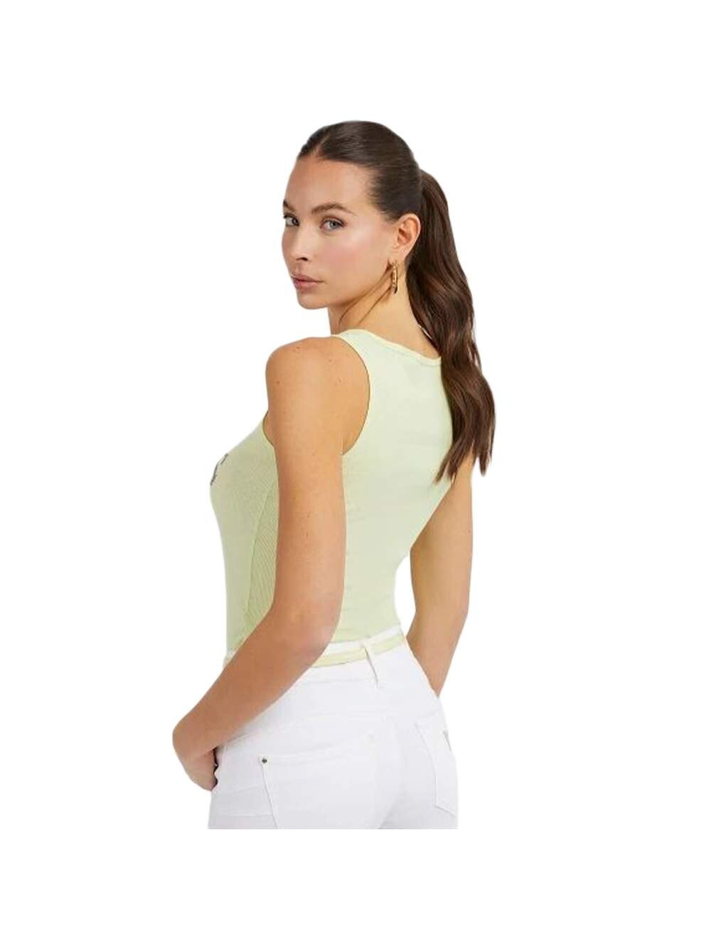 Настоящая женская майка Guess зеленого цвета из синтетики. Аутентичная одежда от бренда Guess - Дизайн уличной/спортивной одежды от Guess - Guess для женской моды, идеально подходит для повседневной жизни - Майка Guess зеленого цвета идеально сочетается с остальной частью вашего гардероба - Синтетический материал удобный - классический - аутентичный -.