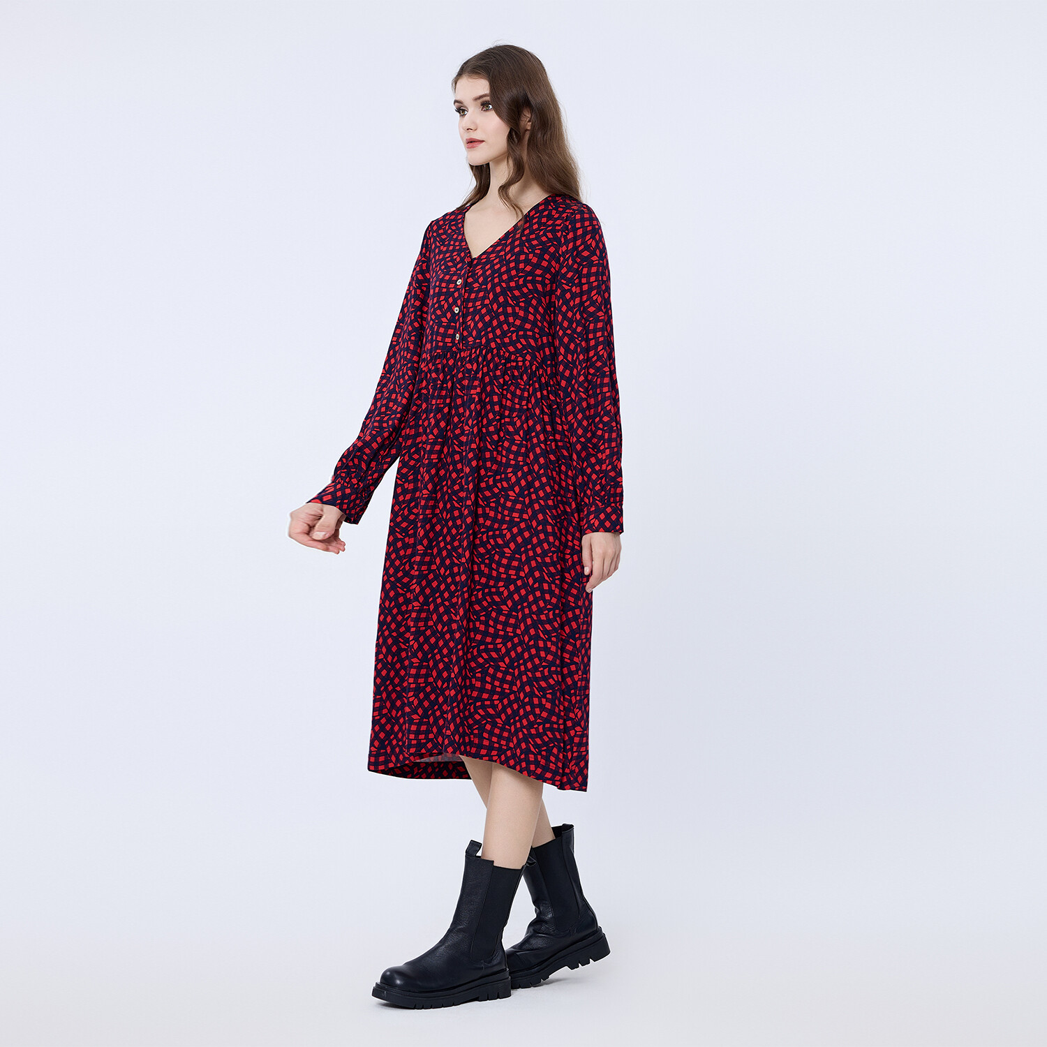 Это модное и повседневное платье привнесет комфорт и стиль в ваш повседневный образ. Вдохновленное кроем ночных рубашек 1950-х годов, оно украшено пуговицами с золотой окантовкой спереди и обеспечивает объем от талии до подола. Мягкая, дышащая фланель с принтом или однотонная. Повседневная вещь, которая прослужит вам несколько сезонов. Сочетайте его с курткой в стиле Perfecto и ботинками на плоской подошве для образа в стиле «нео-рок» или с кроссовками для еще более непринужденного образа. Детали изделия: - Форма: свободная, трапециевидная - Длина: 115 см - Длинные рукава - V-образный вырез - Без застежки.