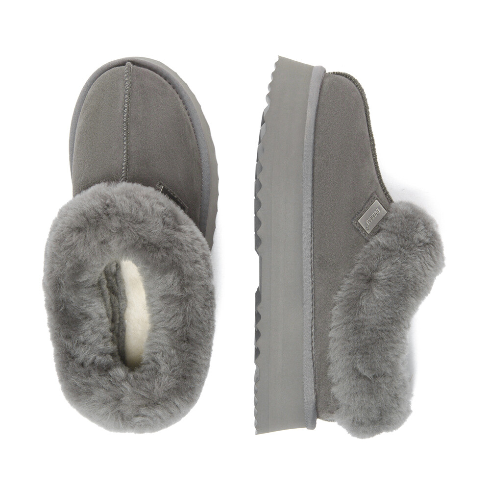 Оставайтесь уютными и стильными в вневременных тапочках Topknot Ankle Slippers, новейшей обуви с модным дизайном на платформе. Эти тапочки, выполненные в пяти шикарных цветовых вариантах, окутывают ваши ноги роскошной овечьей шерстью, обеспечивая непреодолимый комфорт. В комплекте с пушистым шерстяным воротником до щиколотки, чье непреходящее очарование будет держать их в тренде в любое время года. Номер продукта: EAU2017 Описание: Верх из коровьей замши, стелька и подкладка из овечьей шерсти, подошва из ЭВА.