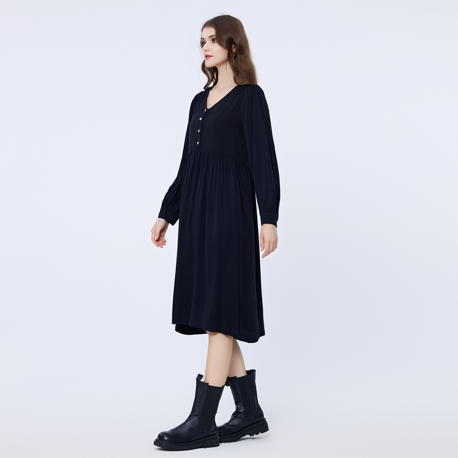 Это модное и повседневное платье привнесет комфорт и стиль в ваш повседневный образ. Вдохновленное кроем ночных рубашек 1950-х годов, оно украшено пуговицами с золотой окантовкой спереди и обеспечивает объем от талии до подола. Мягкая, дышащая фланель с принтом или однотонная. Повседневная вещь, которая прослужит вам несколько сезонов. Сочетайте его с курткой в стиле Perfecto и ботинками на плоской подошве для образа в стиле «нео-рок» или с кроссовками для еще более непринужденного образа. Детали изделия: - Форма: свободная, трапециевидная - Длина: 115 см - Длинные рукава - V-образный вырез - Без застежки.