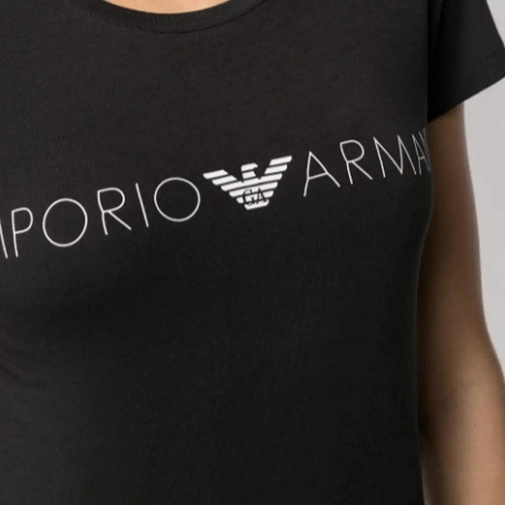 Женская классическая футболка с логотипом Emporio Armani, черный хлопок. Аутентичная одежда от Emporio Armani - Дизайн уличной одежды/спортивной одежды от Emporio Armani - Emporio Armani для женской моды, идеально подходит для повседневной жизни - Футболка Emporio Armani черного цвета идеально сочетается с остальными предметами вашего гардероба - Материал хлопок, удобный - Классика - Классика логотип - .
