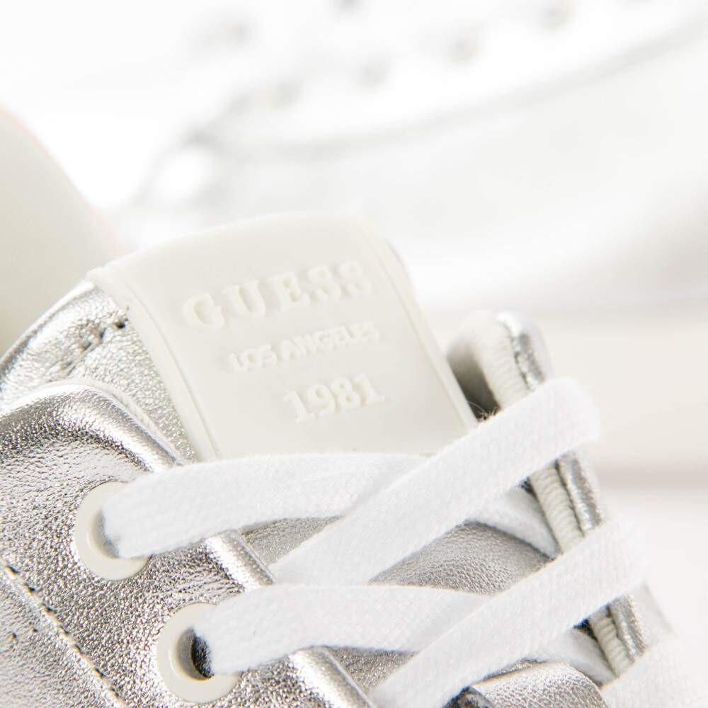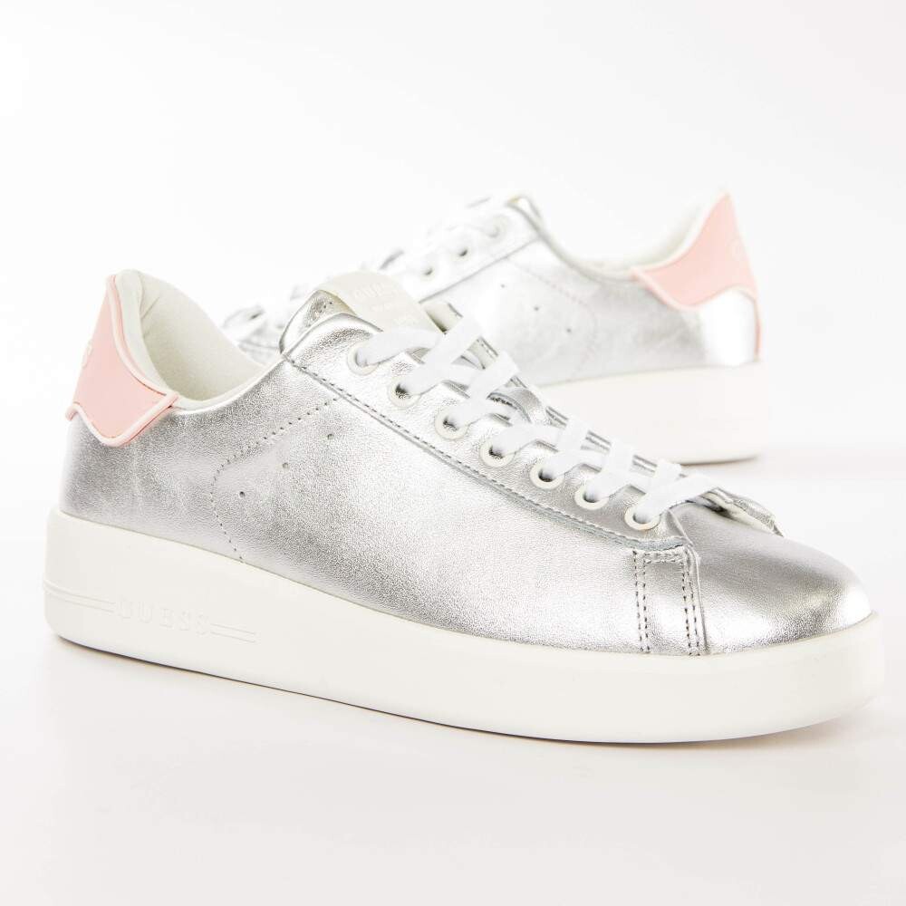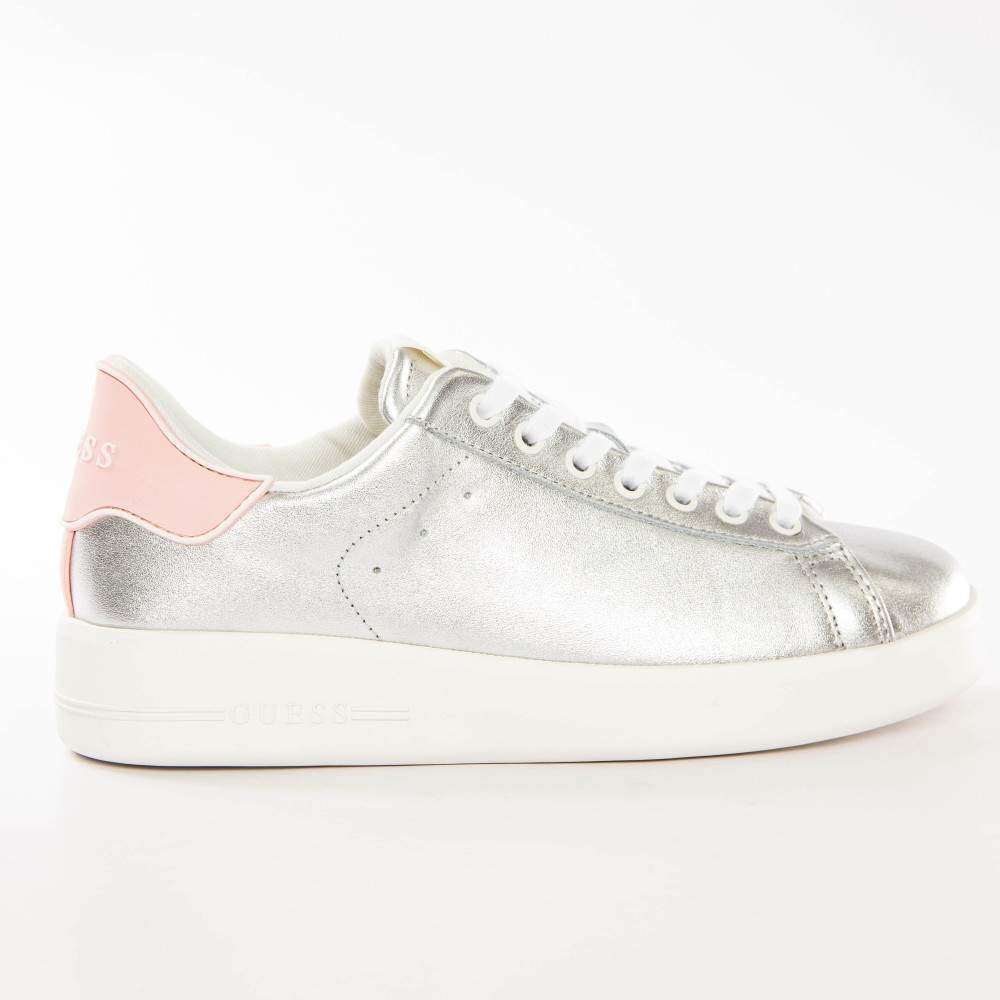 Guess Classic серебристые женские кроссовки серебро синтетика. Аутентичная обувь бренда Guess - дизайн уличной/спортивной одежды от Guess - Guess для женской моды, идеально подходит для повседневной жизни - Кроссовки Guess серебристого цвета идеально сочетаются с остальным гардеробом - материал синтетический удобный - классические шнурки - классическое серебро - синтетика
