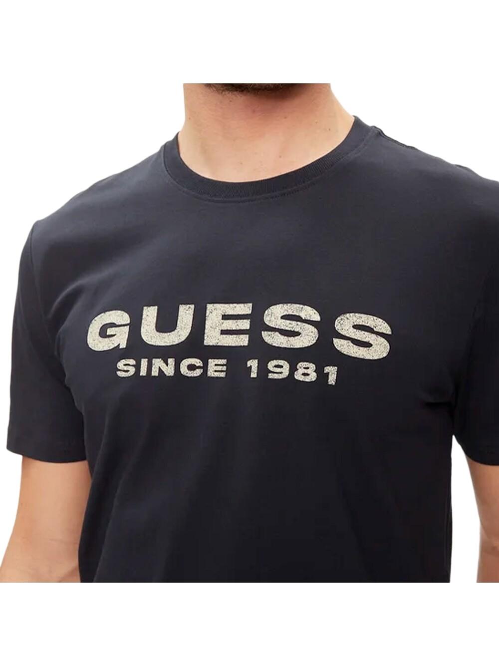 Футболка Guess с 1981 года, мужская, синяя, хлопок. Аутентичная одежда бренда Guess - дизайн уличной/спортивной одежды от Guess - Guess для мужской моды, идеально подходит для повседневной жизни - Футболка Guess синего цвета идеально сочетается с остальными предметами вашего гардероба - материал хлопок, удобный - классика - с 1981 года - .