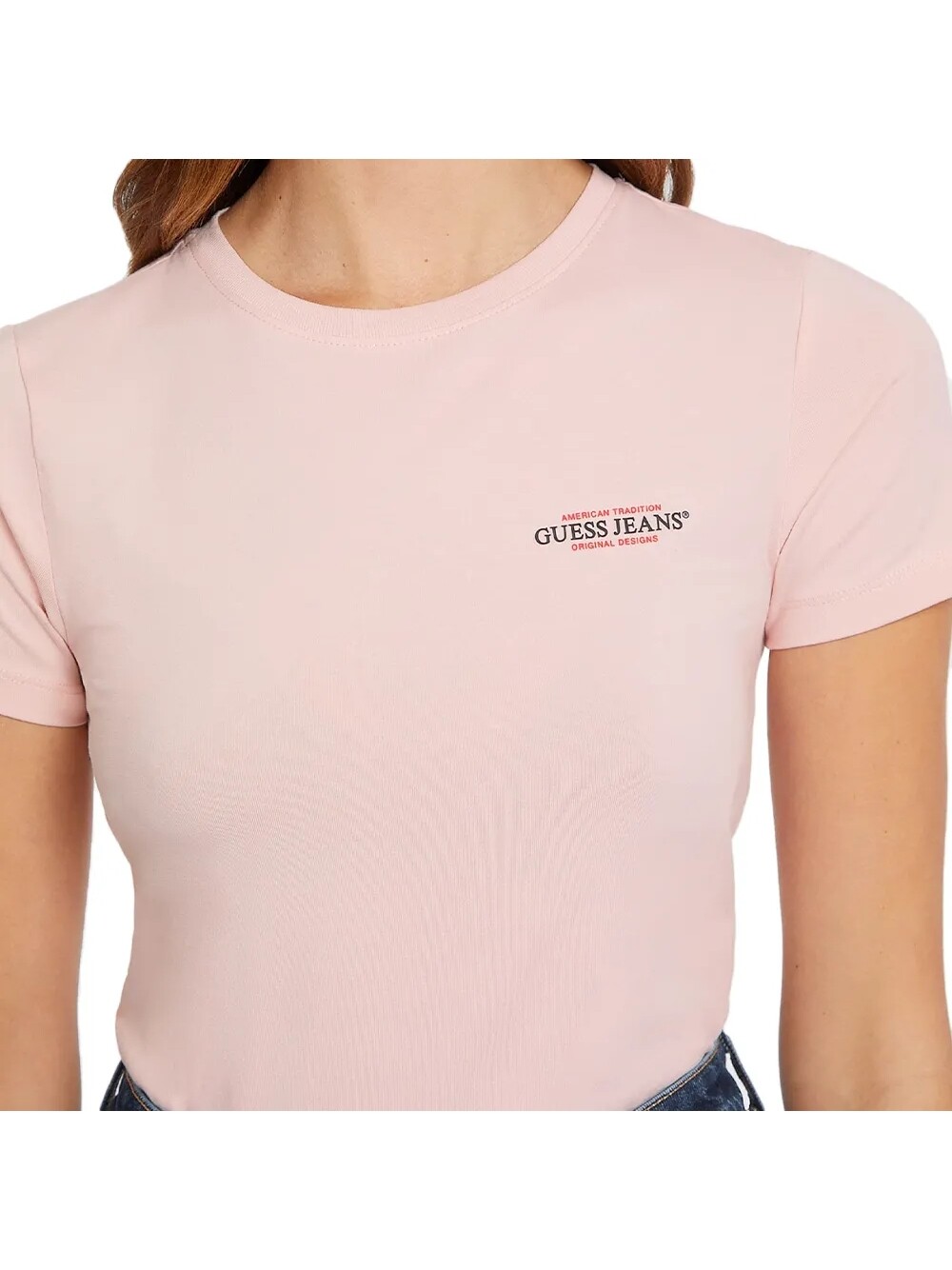 Guess Slim женская футболка с принтом розового цвета, хлопок. Аутентичная одежда бренда Guess - дизайн уличной/спортивной одежды от Guess - Guess для женской моды, идеально подходит для повседневной жизни - Футболка Guess розового цвета идеально сочетается с остальным предметом вашего гардероба - материал хлопок, удобный - классический - тонкий принт - .