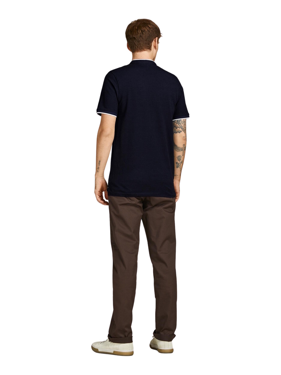 Современная рубашка с короткими рукавами, короткой планкой на пуговицах, воротником стойкой и ребристыми краями рукавов.