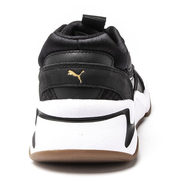 Обновите свой гардероб женскими кроссовками Nova 90's Bloc от Puma. Гладкие черные кожаные шнурки дополнены толстой резиновой подошвой в стиле ретро, создающей модный вид.