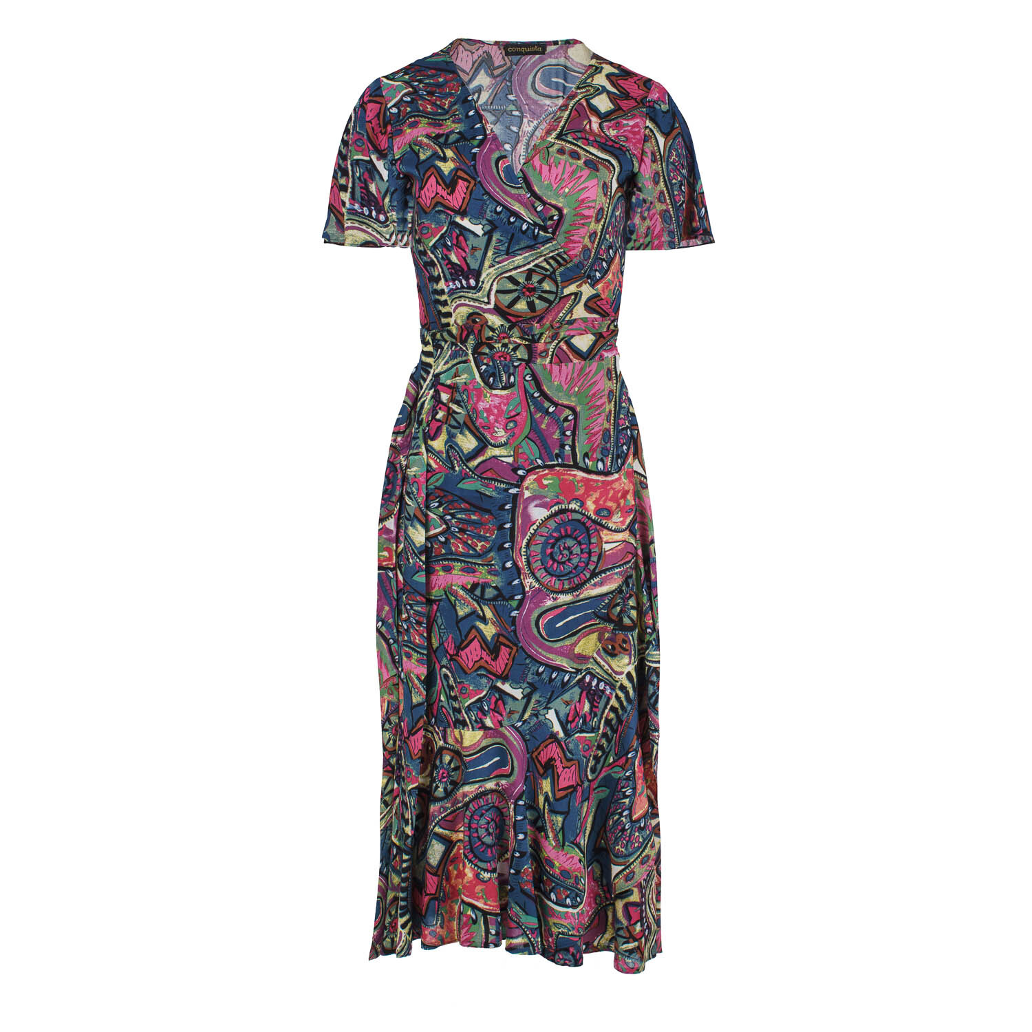 Платье с запахом рюшами и принтом Conquista, мультиколор