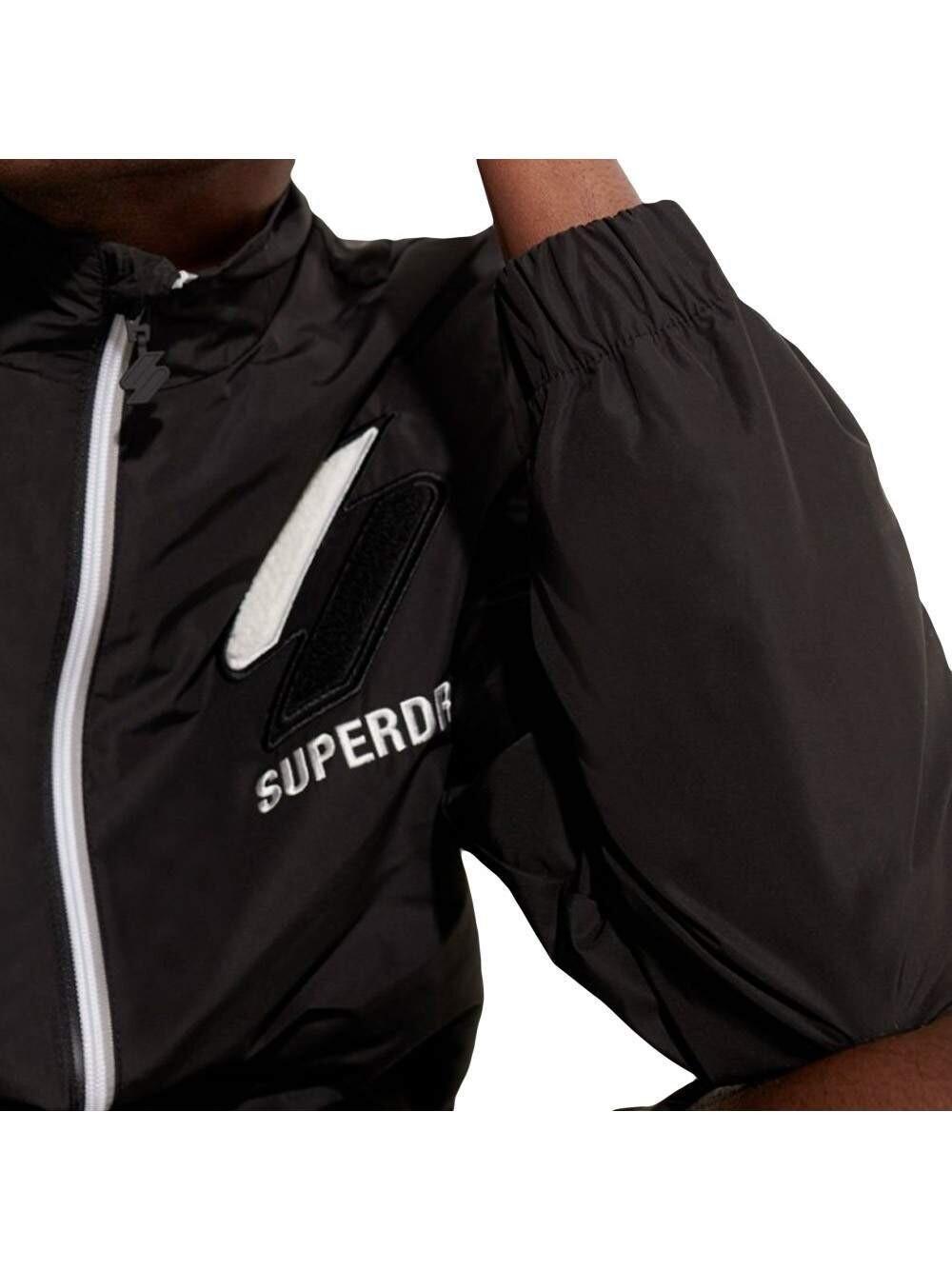 Мужская куртка Superdry Track Black, черная синтетика. Аутентичная одежда от Superdry — дизайн уличной/спортивной одежды от Superdry — Мужская куртка Superdry модного дизайна, идеально подходящая для повседневной носки — Куртка Superdry черного цвета идеально сочетается с остальным гардеробом — удобный синтетический материал — классика — Спортивный черный цвет —.