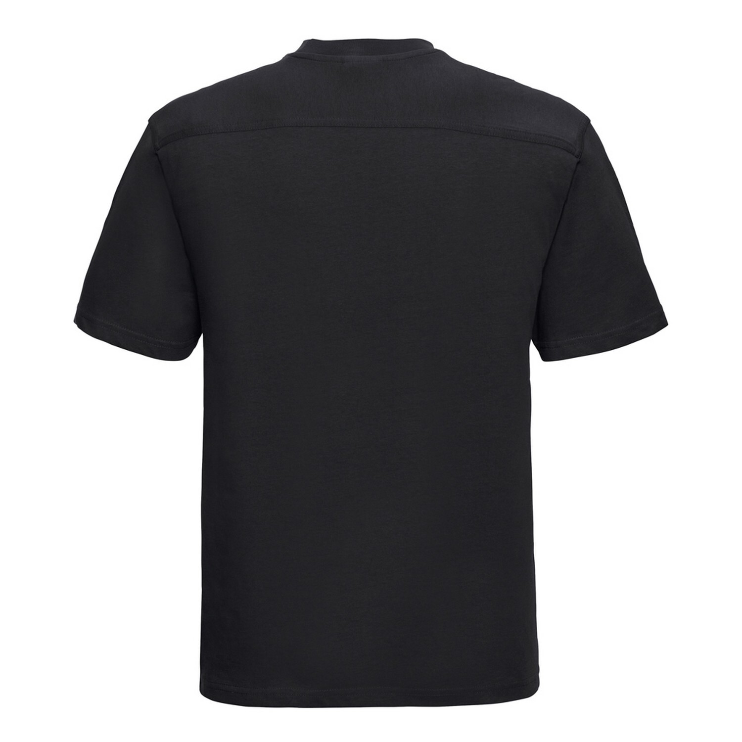 100% чесаный хлопок кольцевого прядения. Технология ткани: прочная, тяжелая. Дизайн: однотонные. Двойная кокетка, отделка тканевой тесьмой, вставки на плечах, горловина с завязкой, пройма с двойной строчкой, вырез горловины с двойной строчкой, рукава с двойной строчкой. GSM (граммы на квадратный метр): 180. Экологичность: одобрение Amfori, Better Cotton Initiative, BSCI, Fair Work Association, сертификат Oeko-Tex Standard 100, сертификат WRAP. Круглый вырез, ребристый. Короткий рукав. Подол: двойная строчка.