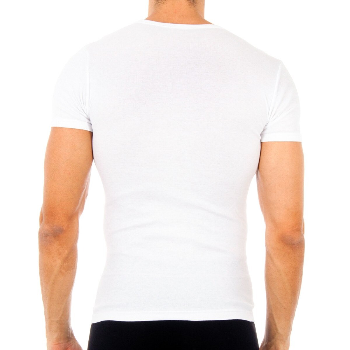 Мужское нижнее белье-футболка. Короткие рукава. Круглый вырез. Гладкая ткань. Ребристый чистый хлопок. Одежда, которая идеально адаптируется к телу. Состав: 100% хлопок. Уход: Ручная стирка при максимальной температуре. 40°. Не используйте отбеливатель. Использование сушилки не допускается. Гладить при максимальной температуре. 130°. Не подвергать химической чистке.