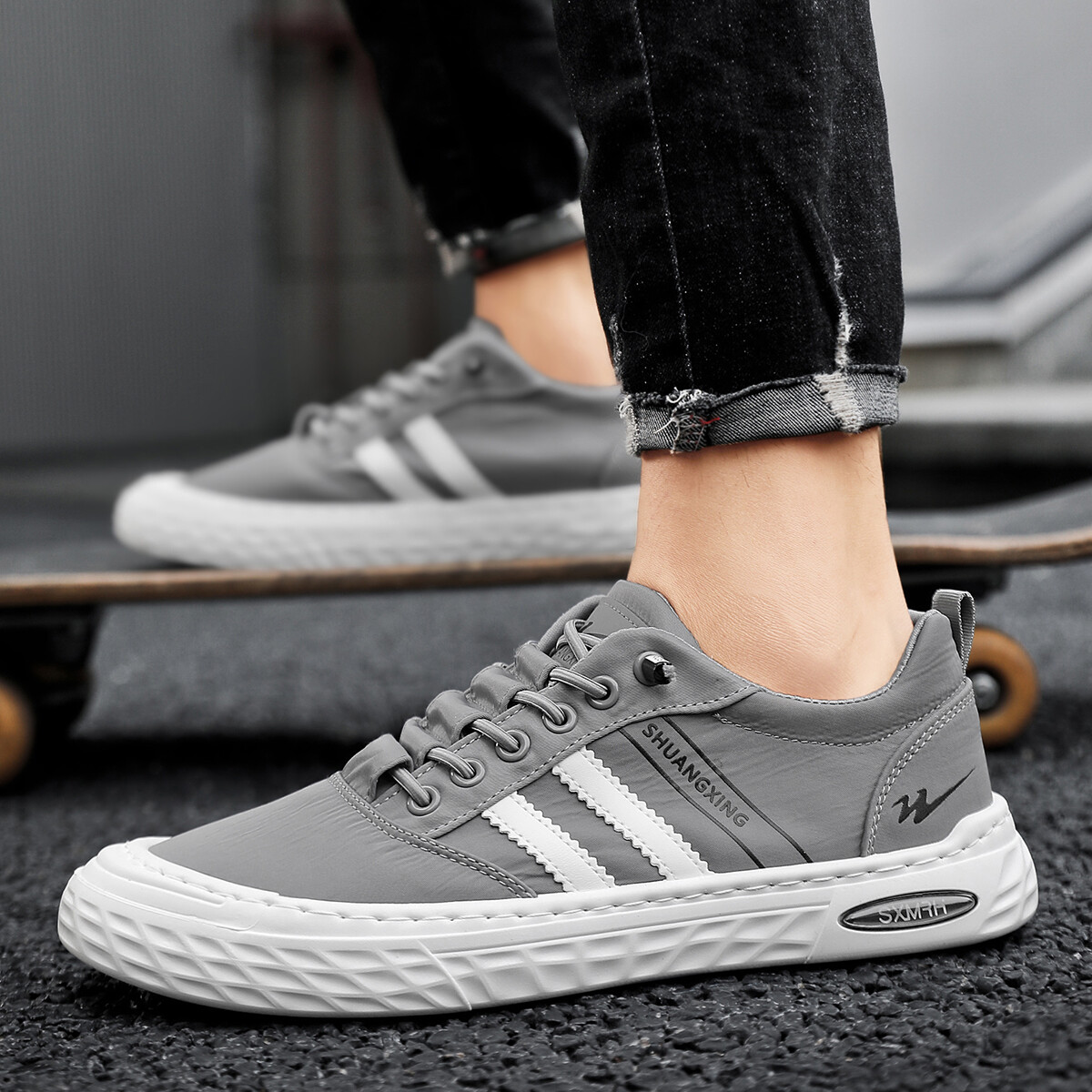 Кеды мужские, обувь для скейтбординга низкая черный Binary