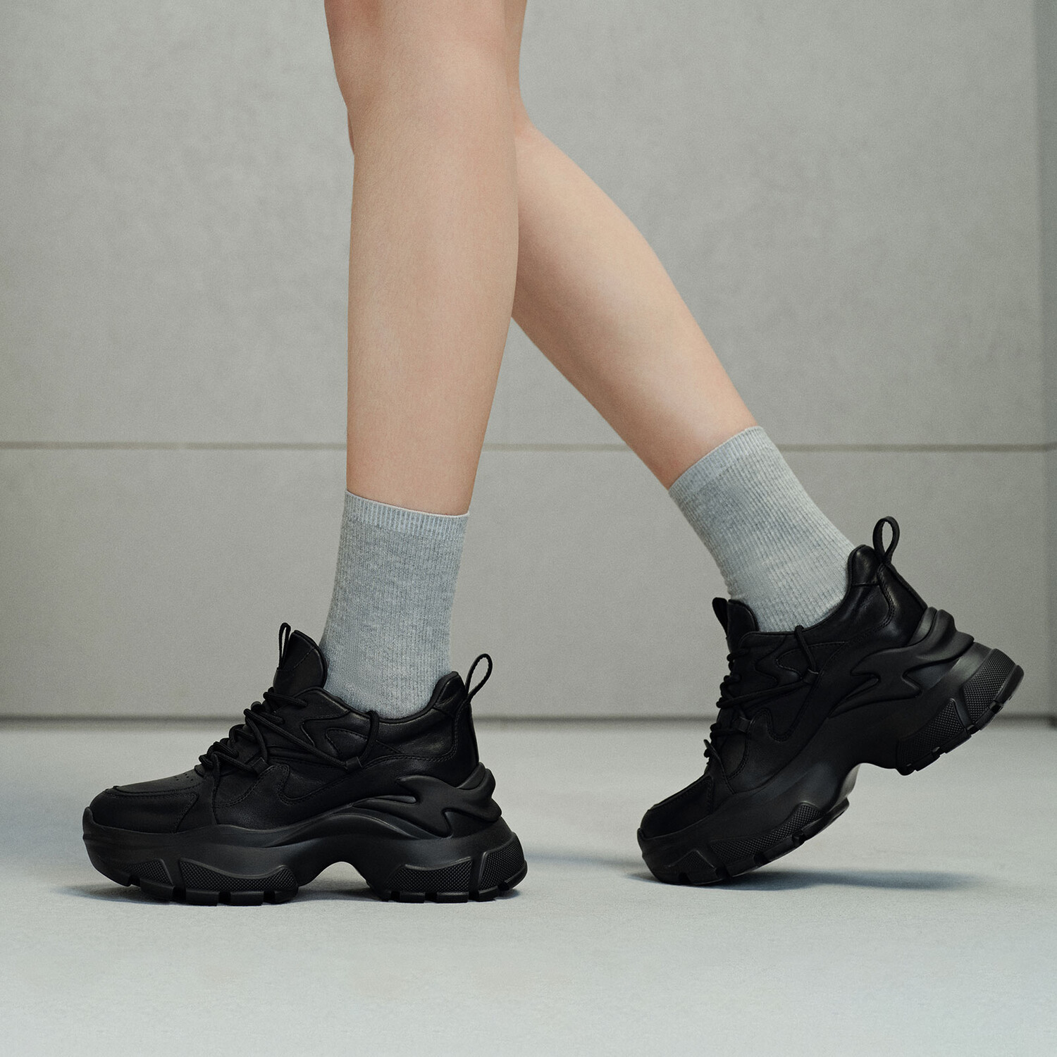 Кроссовки женские толстые низкие Gg-Cc, черный