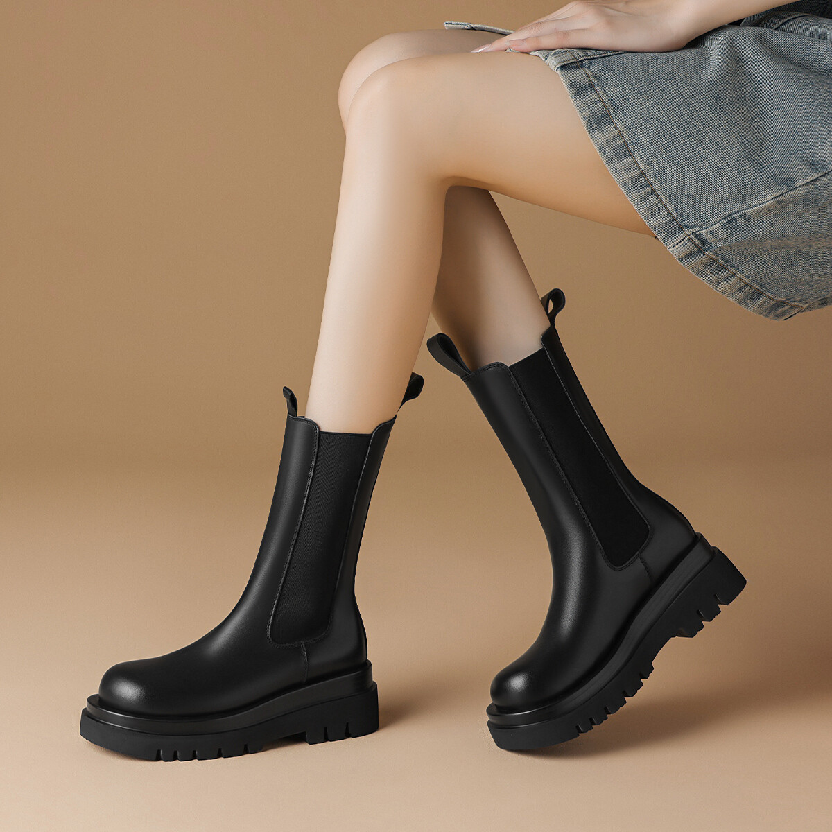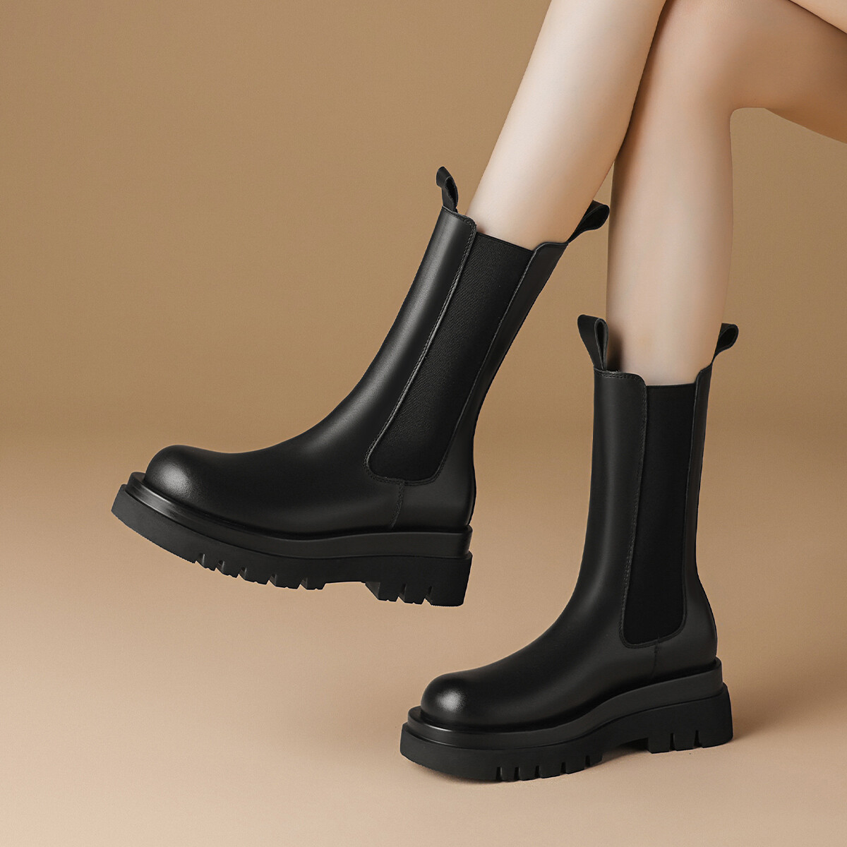 Ботинки Челси женские Boerdiqi, цвет Black Fleece-Lined