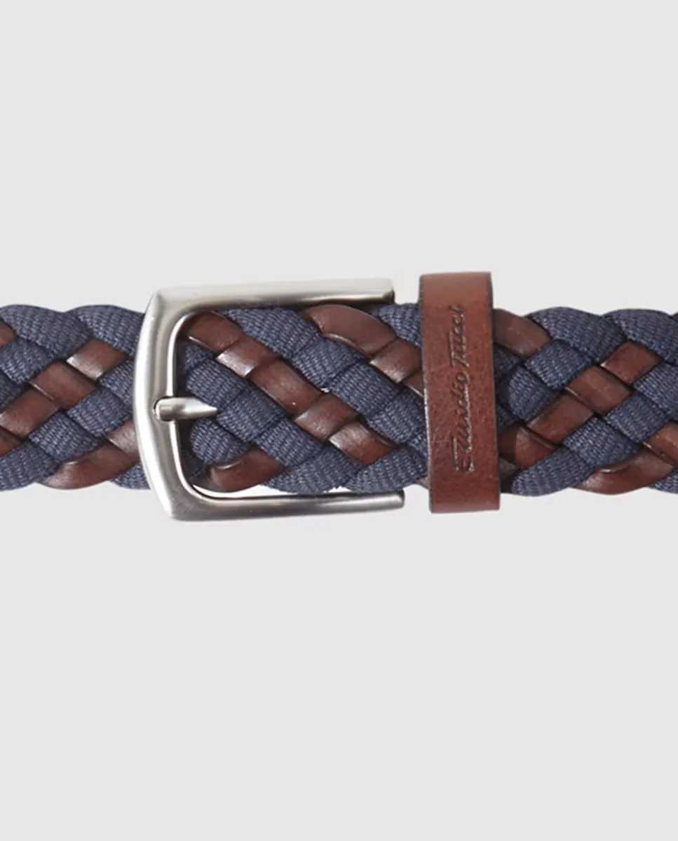 Плетеный мужской ремень темно-синего цвета Emidio Tucci