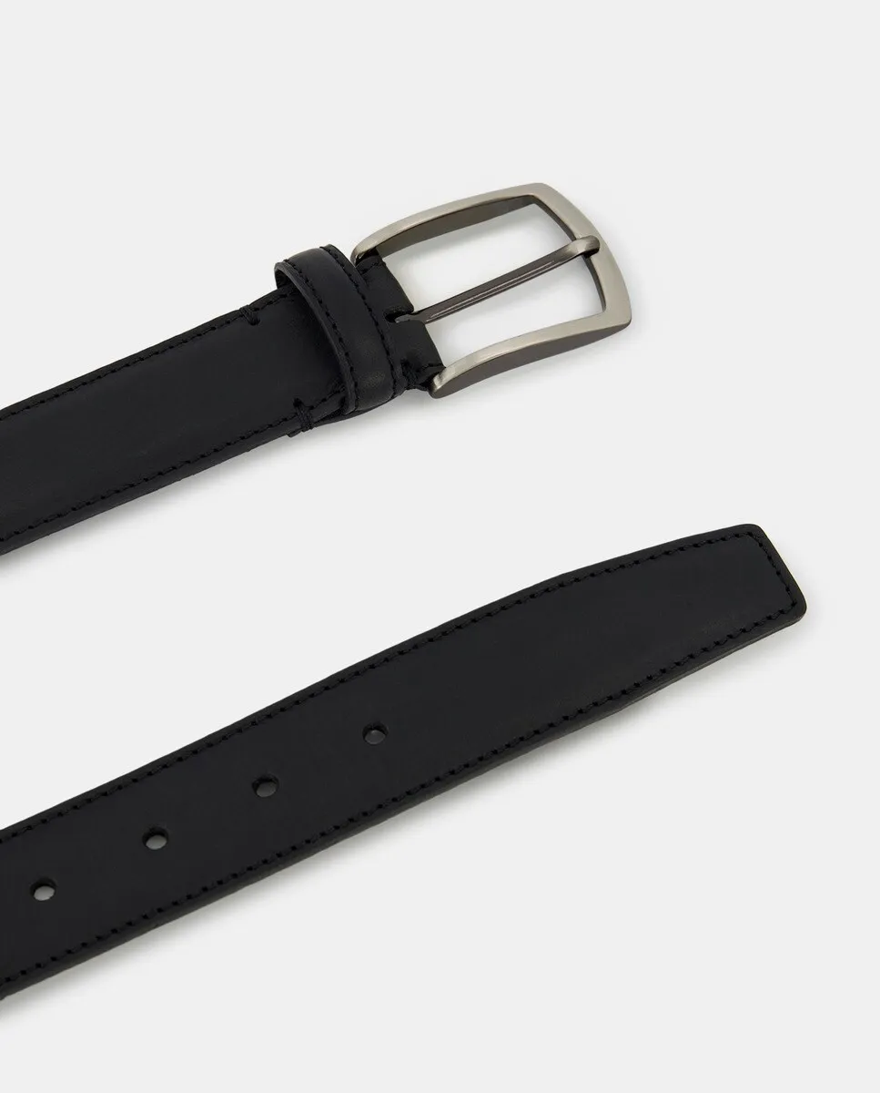 Кожаный ремень для платья шириной 35 мм, мягкая строчка по краям, пряжка никелевого цвета.