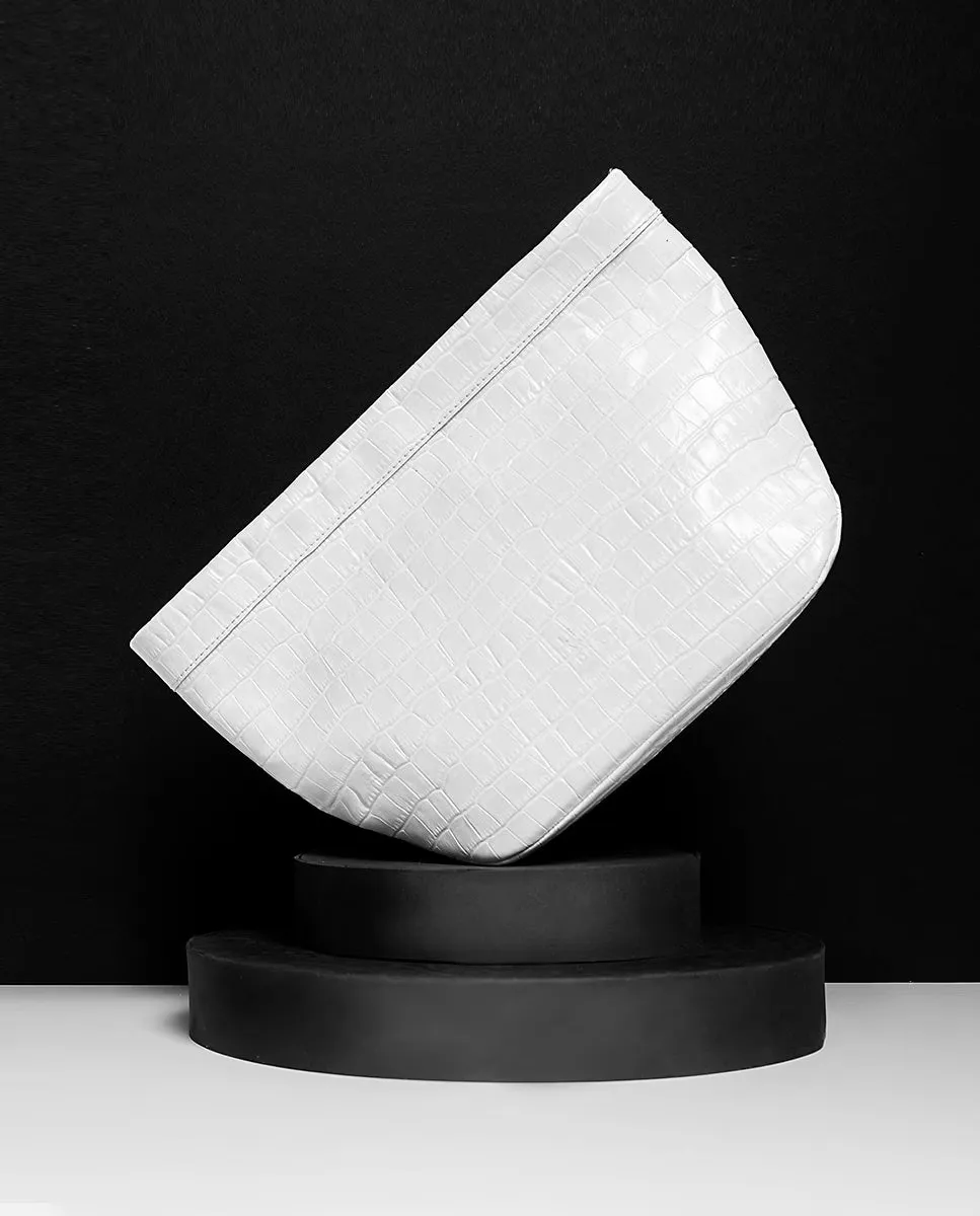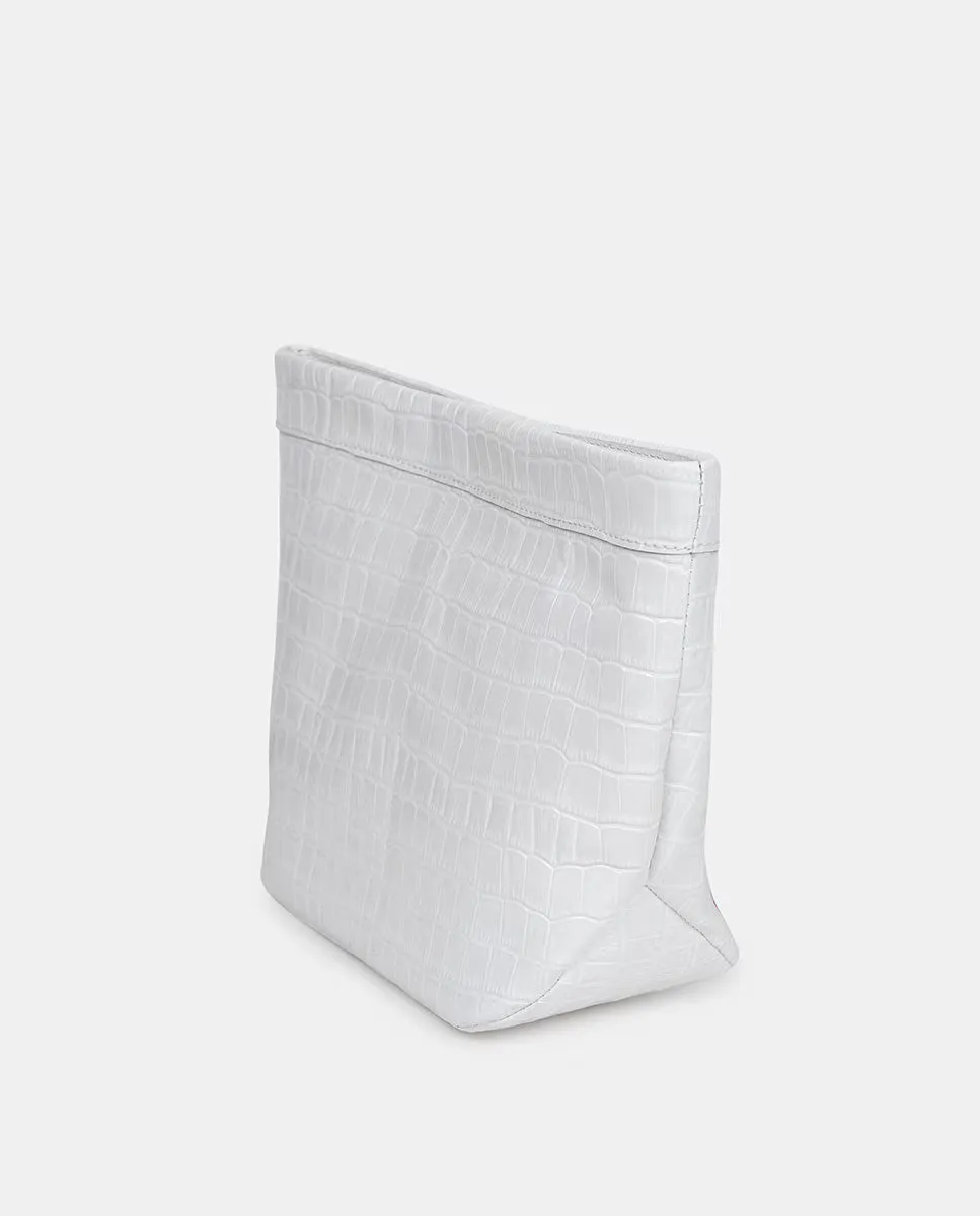 Сумочка из коровьей кожи белого цвета с гравировкой кокоса, производство Испания. Соответствующая роскошная застежка на магните, внутренняя подкладка из прорезиненного твила и логотип бренда, выгравированный на передней части сумки.