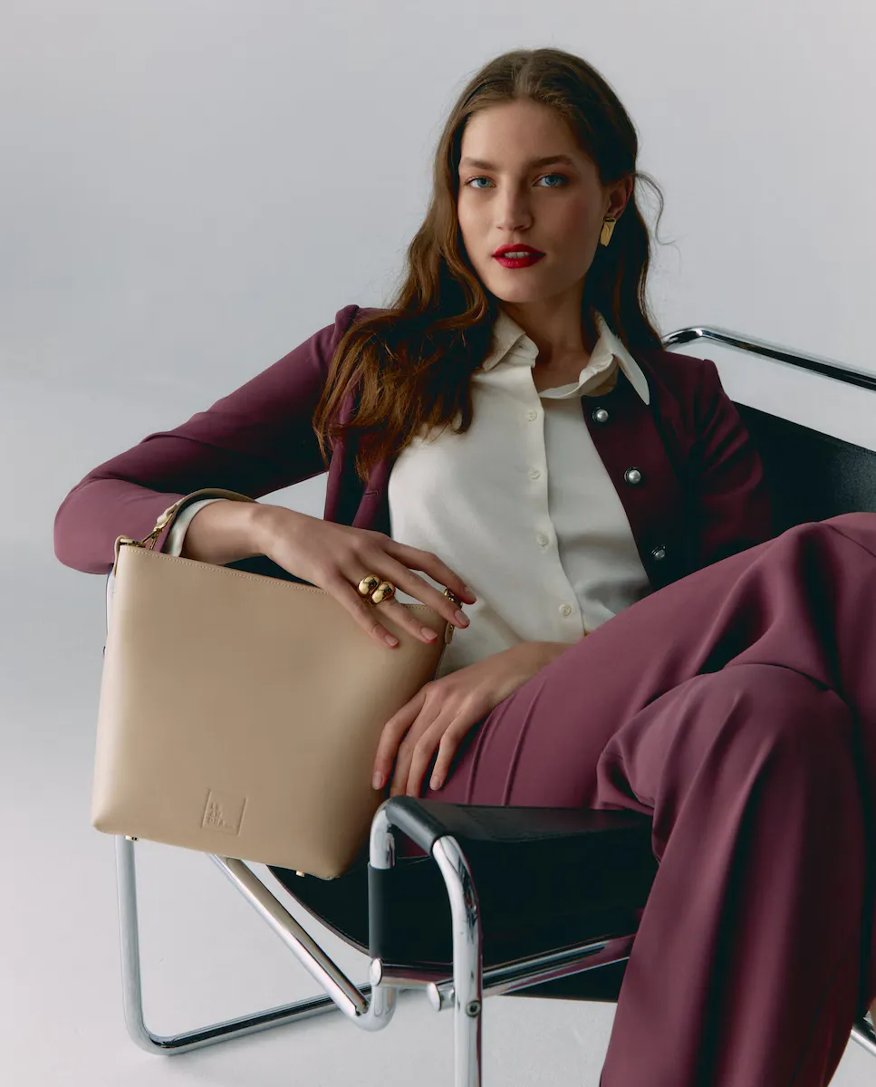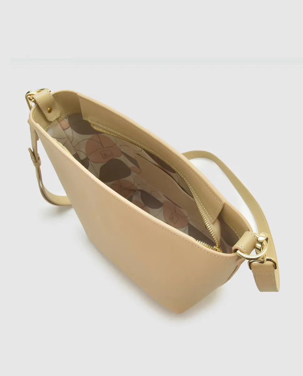 Бежевая большая сумка на плечо из воловьей кожи производства Ubrique, Испания. Многопозиционная сумка с застежкой-молнией и двойной ручкой: короткая съемная ручка и длинный съемный регулируемый ремень через плечо с запонками. Роскошный тон, внутренняя текстильная подкладка из смолистого твила, застежка-молния и выгравированный логотип бренда спереди. Внутренний кожаный карман.