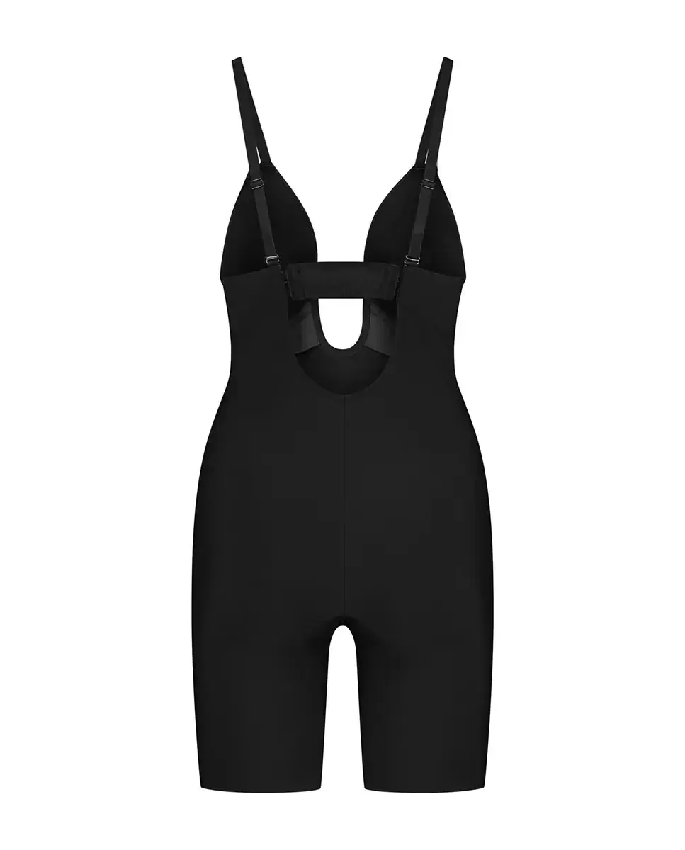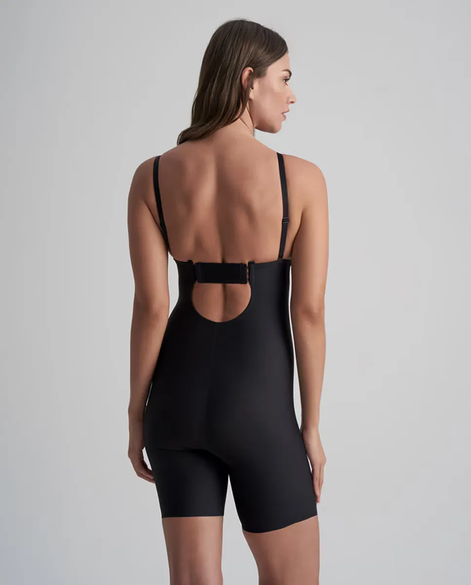 Моделирование брючного боди. Боди Bye Bra Sculpting с ножками обеспечивает высококонтролируемый моделирующий эффект, который комфортно моделирует ваше тело. Глубокий V-образный вырез и спинка с удлиненным до талии вырезом. Многопозиционные лямки. Уплотненные чашки, которые моделируют грудь и подчеркивают декольте. Ножки открываются и отделаны тонкой силиконовой полоской, предотвращающей смещение.
