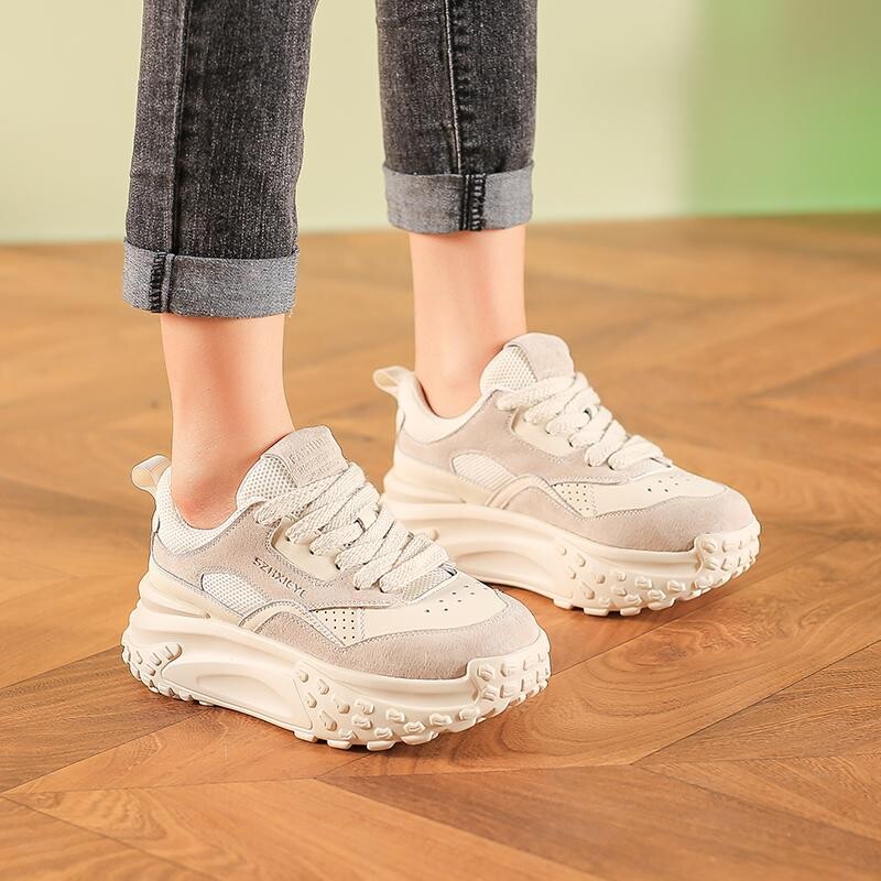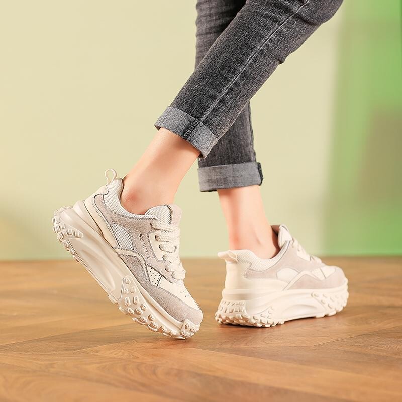 Кроссовки женские толстые низкие Junjali, бежевый