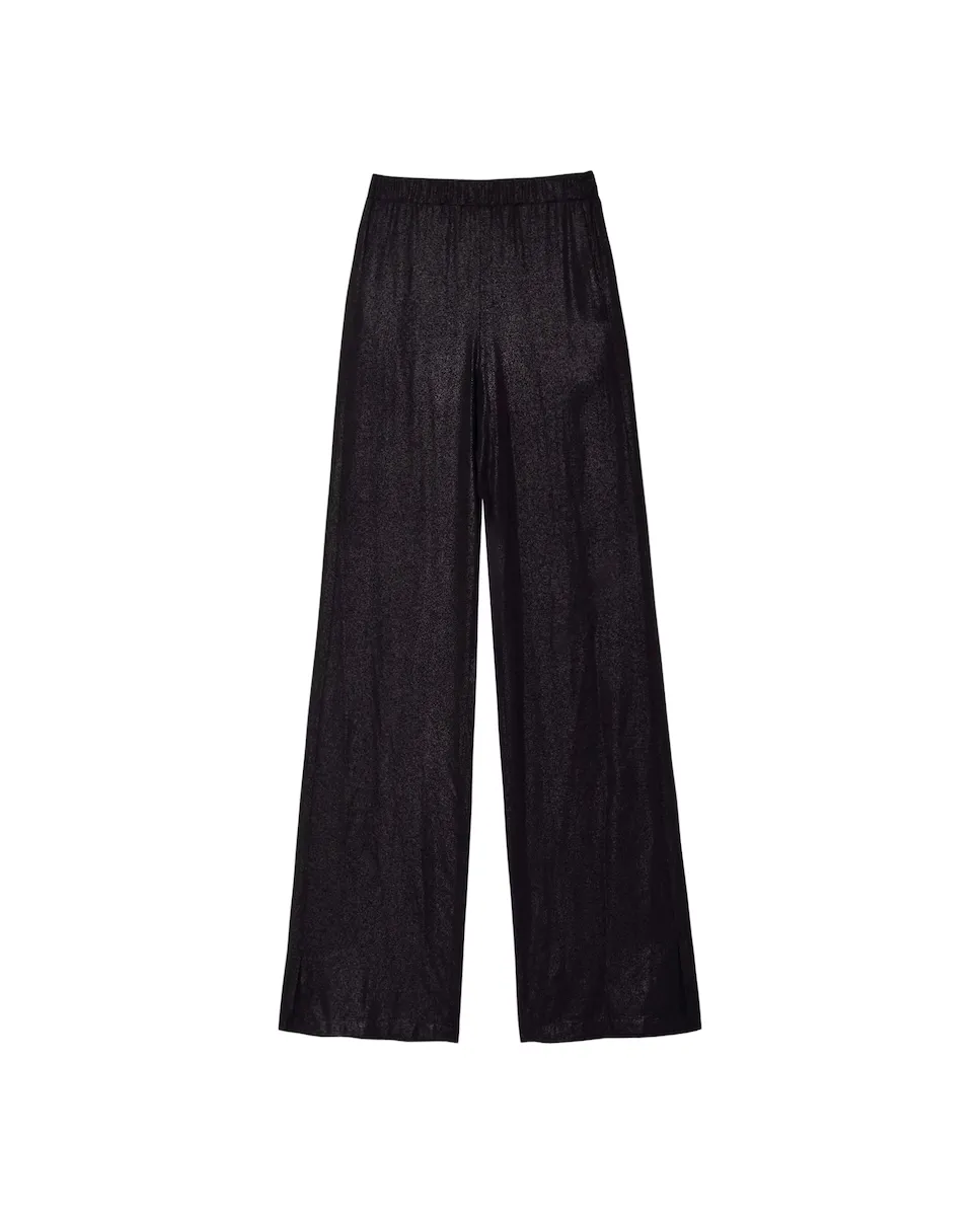Струящиеся брюки с блеском. Его легкая ткань с небольшим золотистым блеском является одной из самых особенных. Они длинные и имеют эластичную талию для идеальной посадки. Внизу имеются две боковые прорези. Комбинируйте его с подходящим верхом.