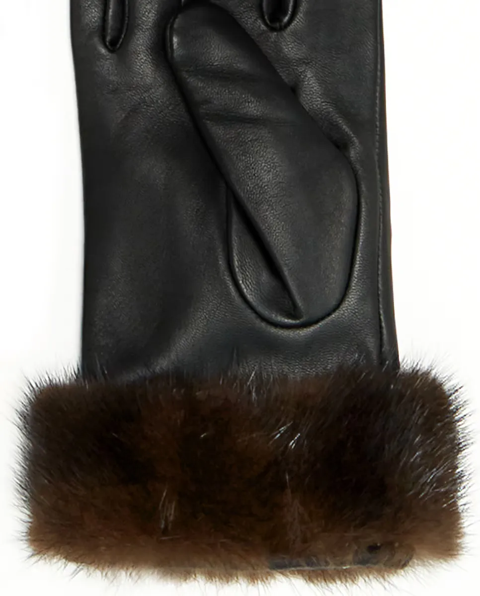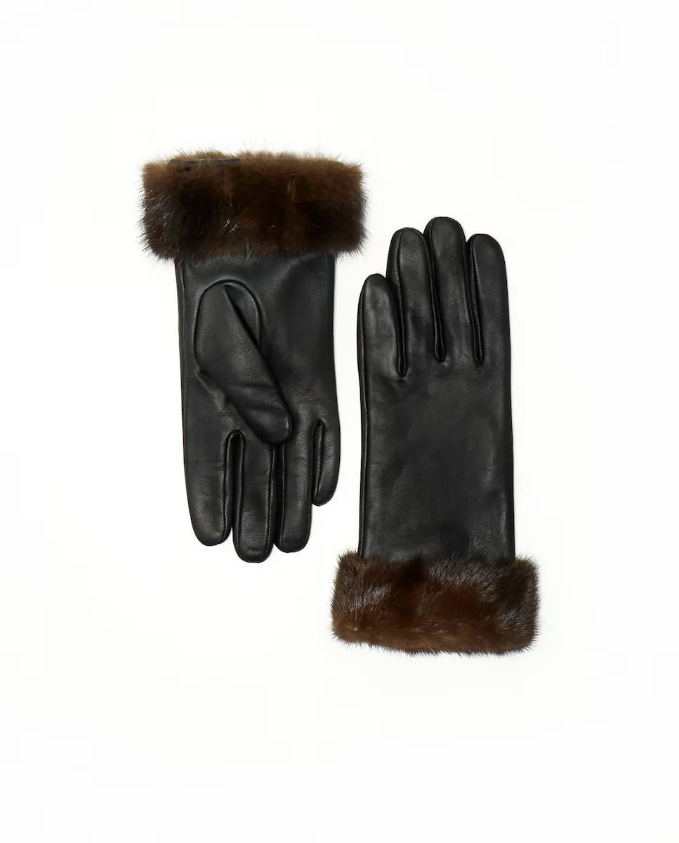 Черные кожаные перчатки с коричневыми манжетами из норки.