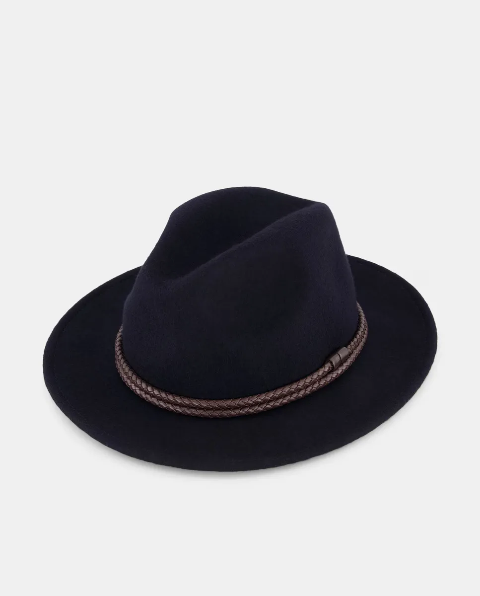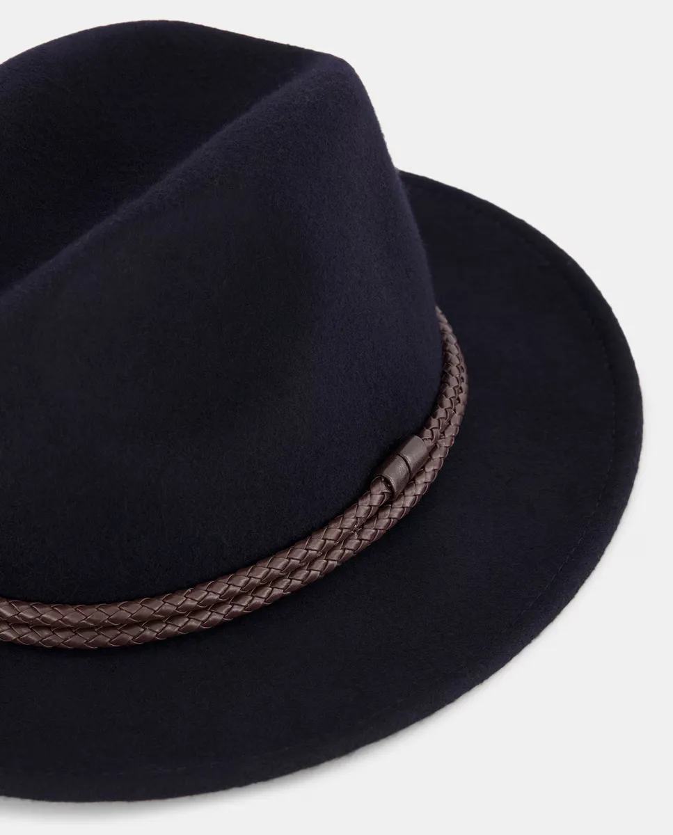 Шляпа с коричневым кожаным плетеным поясом