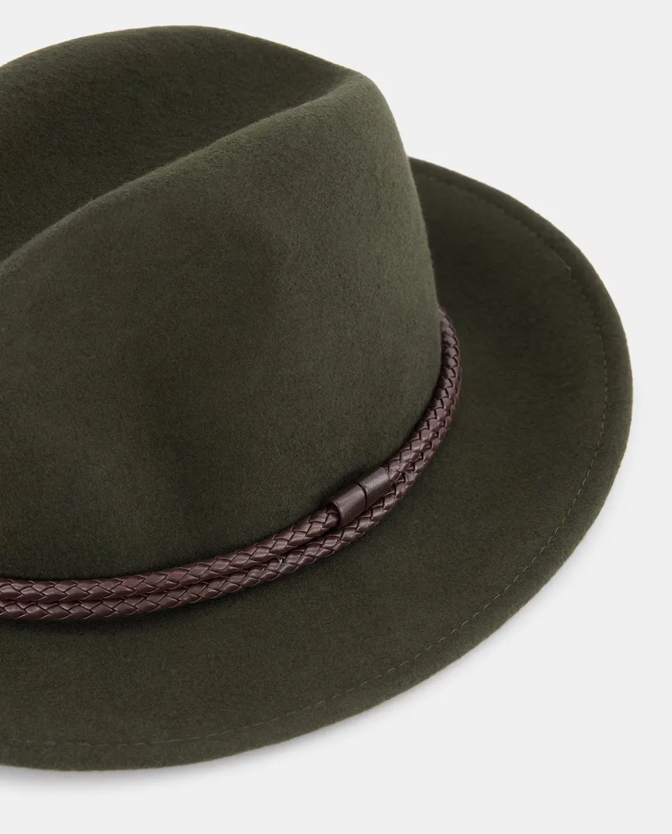 Шляпа с коричневым кожаным плетеным поясом