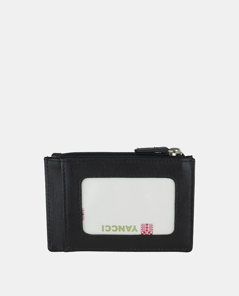 Кошелек с двумя карточками спереди, карманом и карманом на молнии, а также отделением для удостоверения личности сзади.