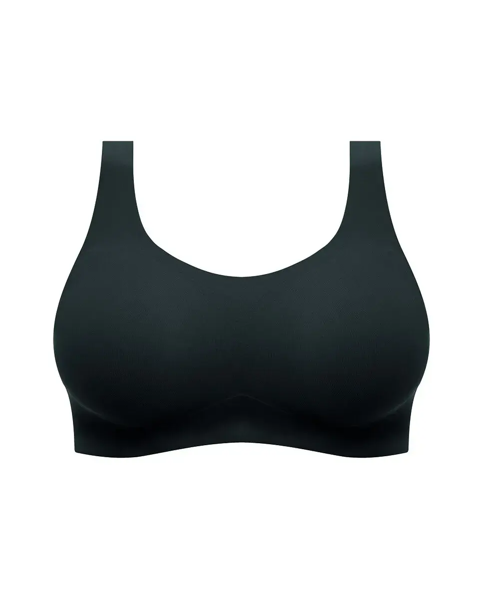 Бесшовный бюстгальтер без косточек, внутренняя усиливающая прокладка и съемные подушечки.