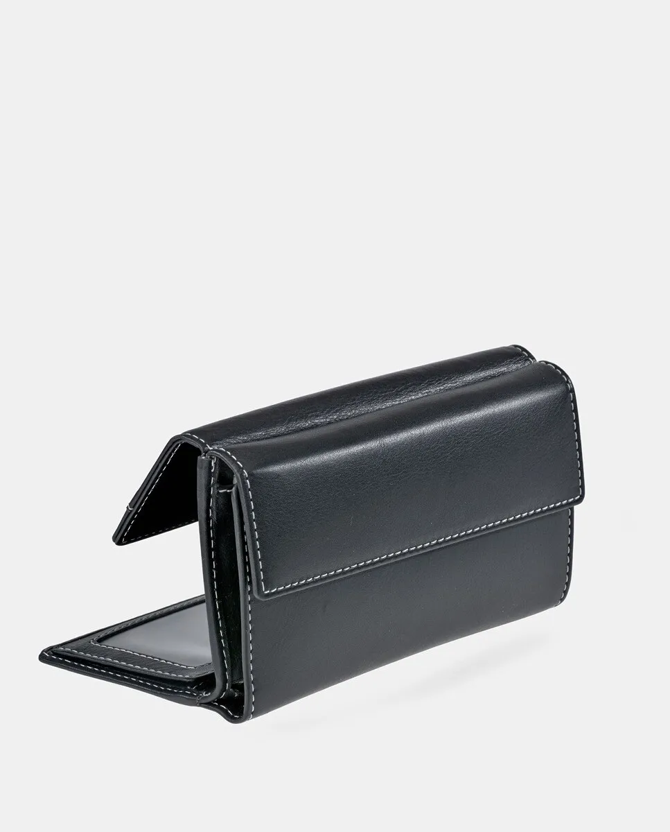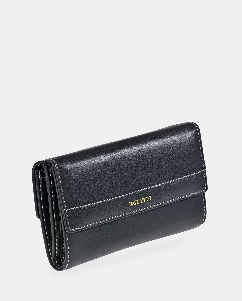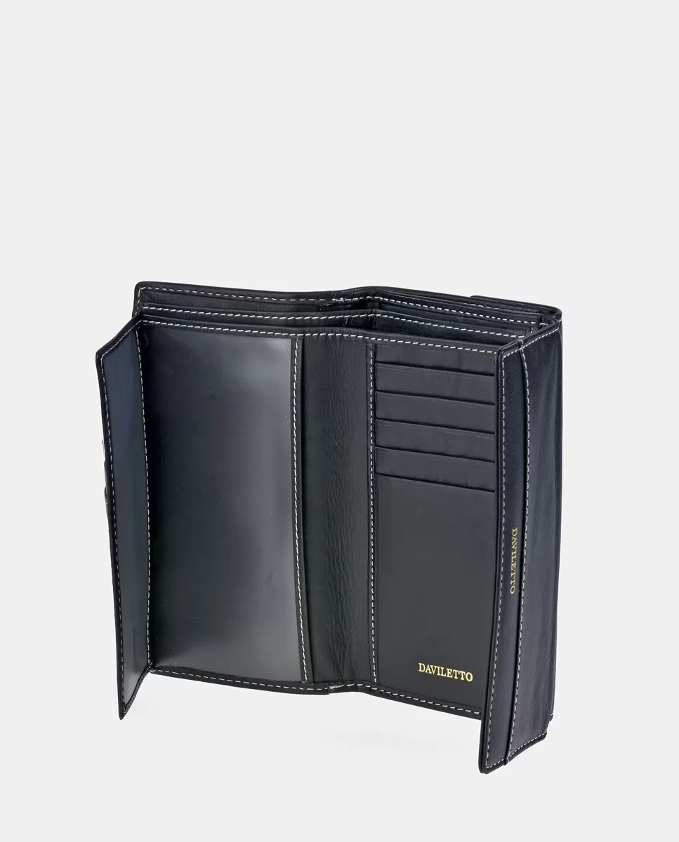 Большой кожаный кошелек с клапаном Daviletto, черный