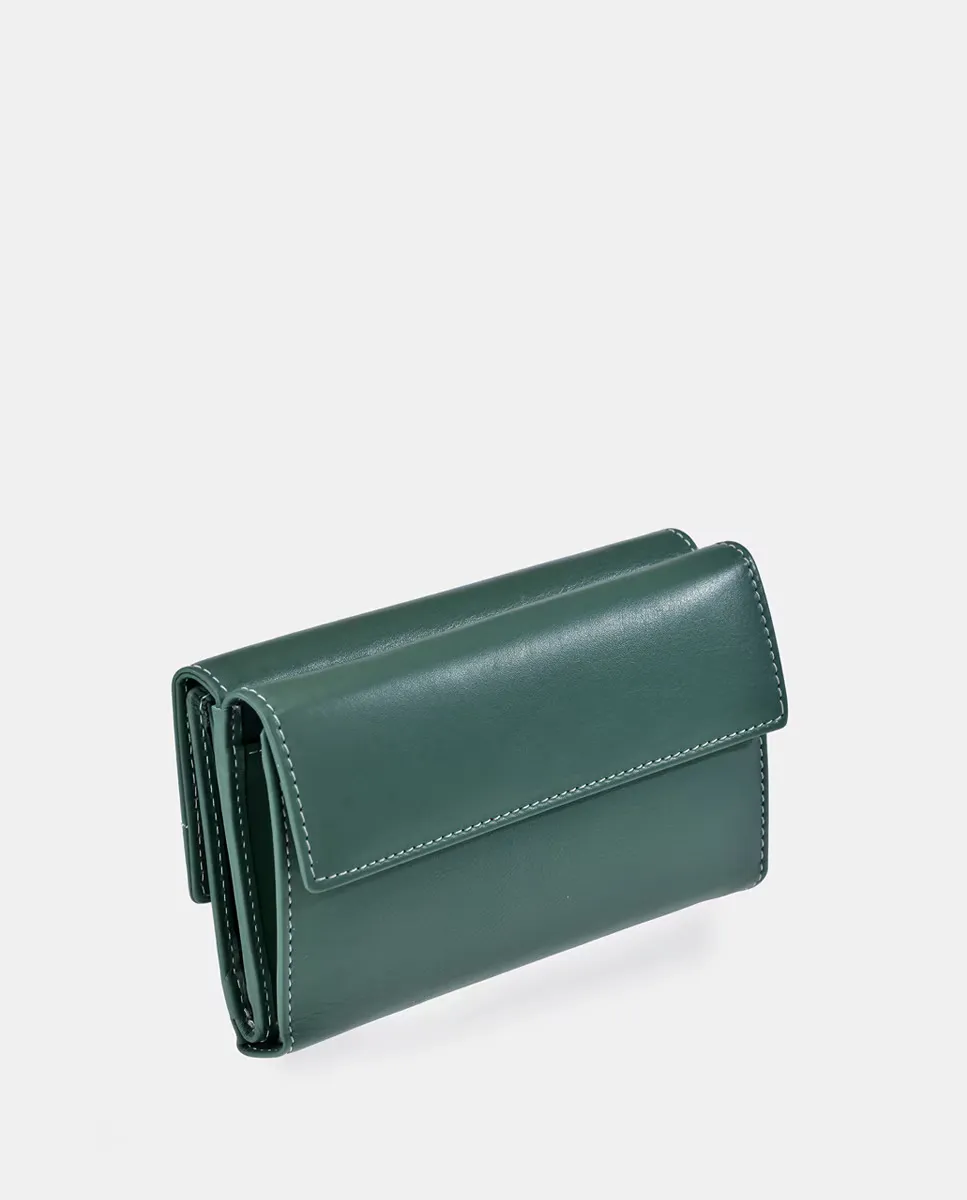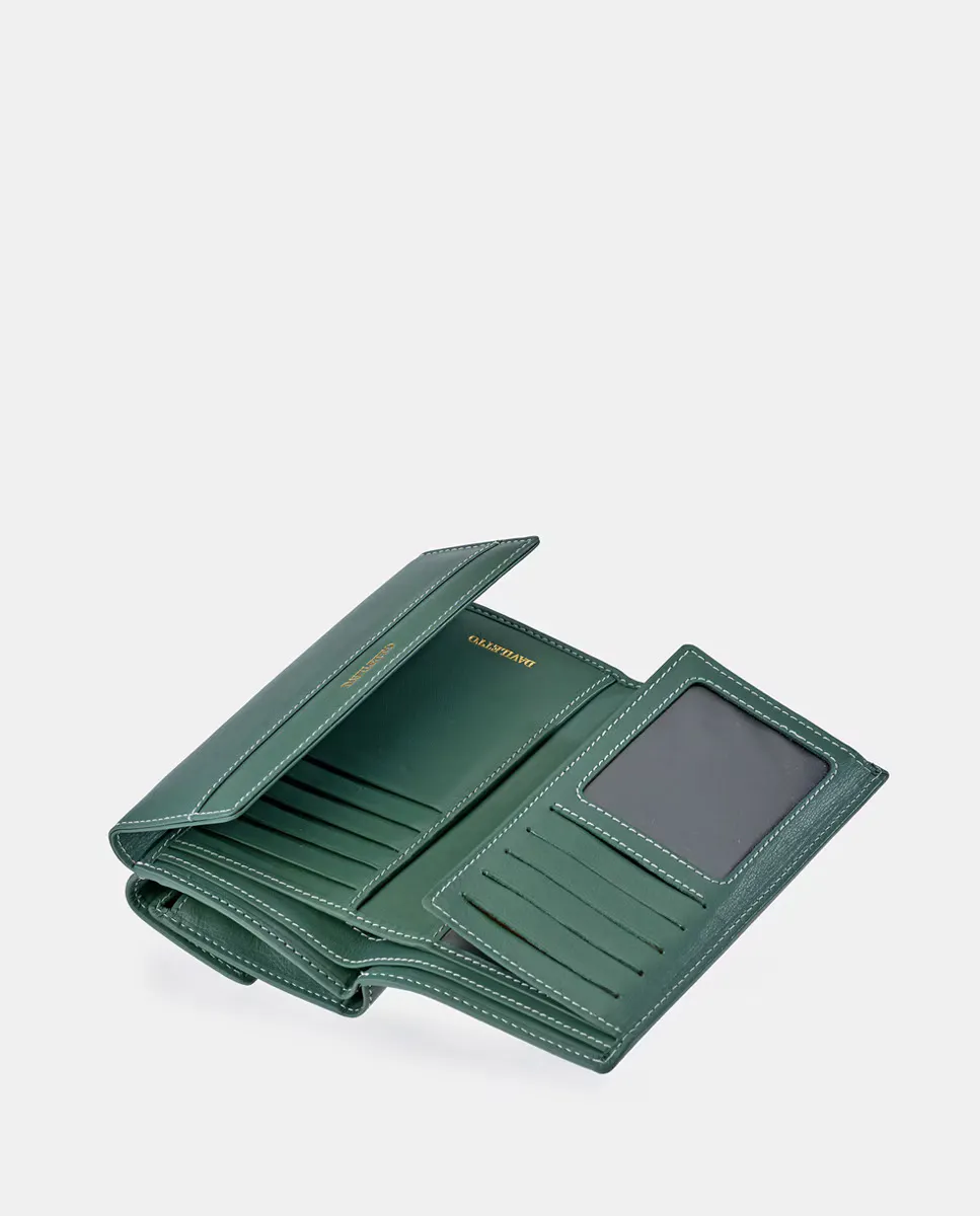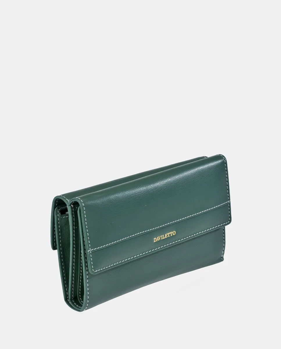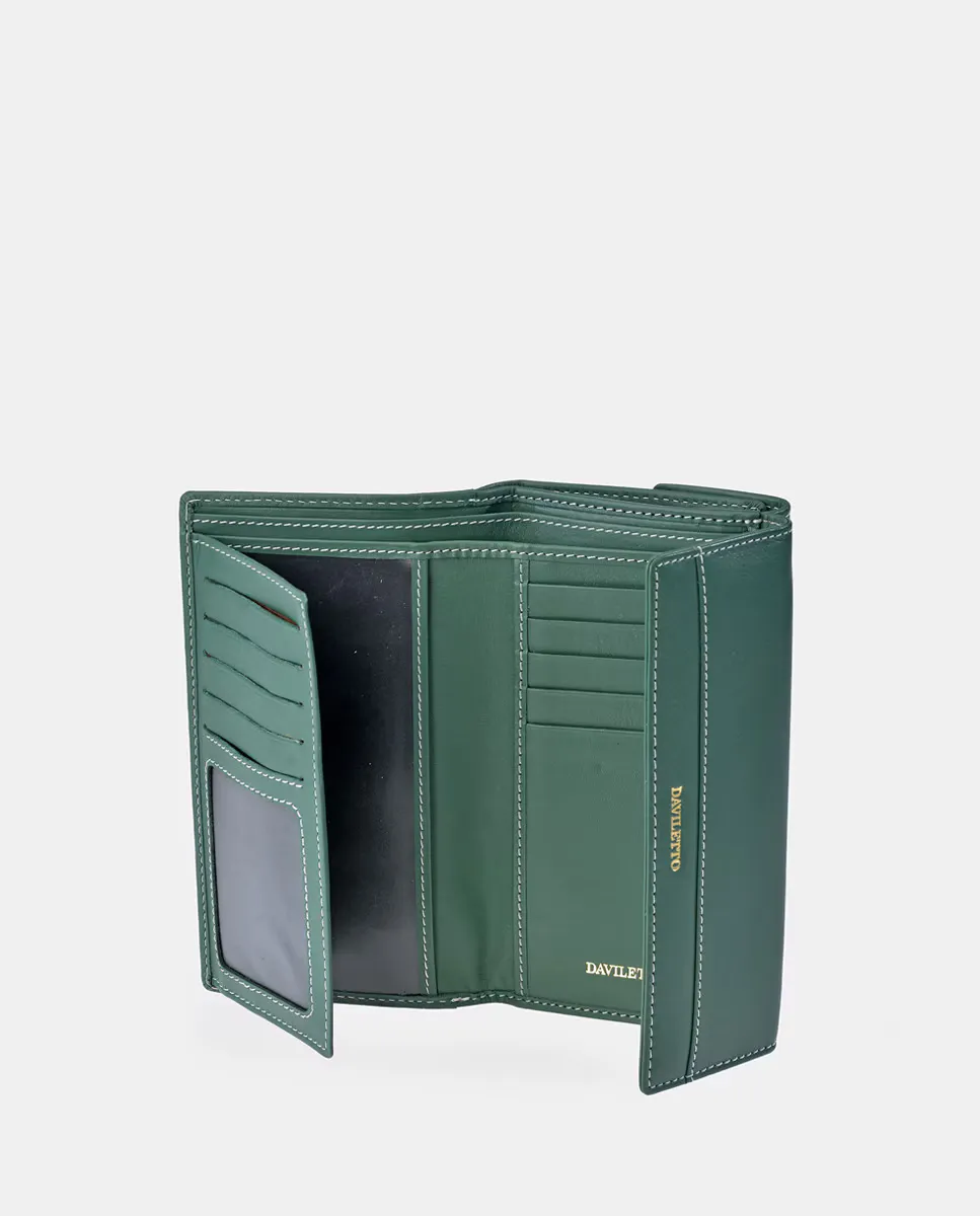 Большой кожаный кошелек с клапаном Daviletto, зеленый