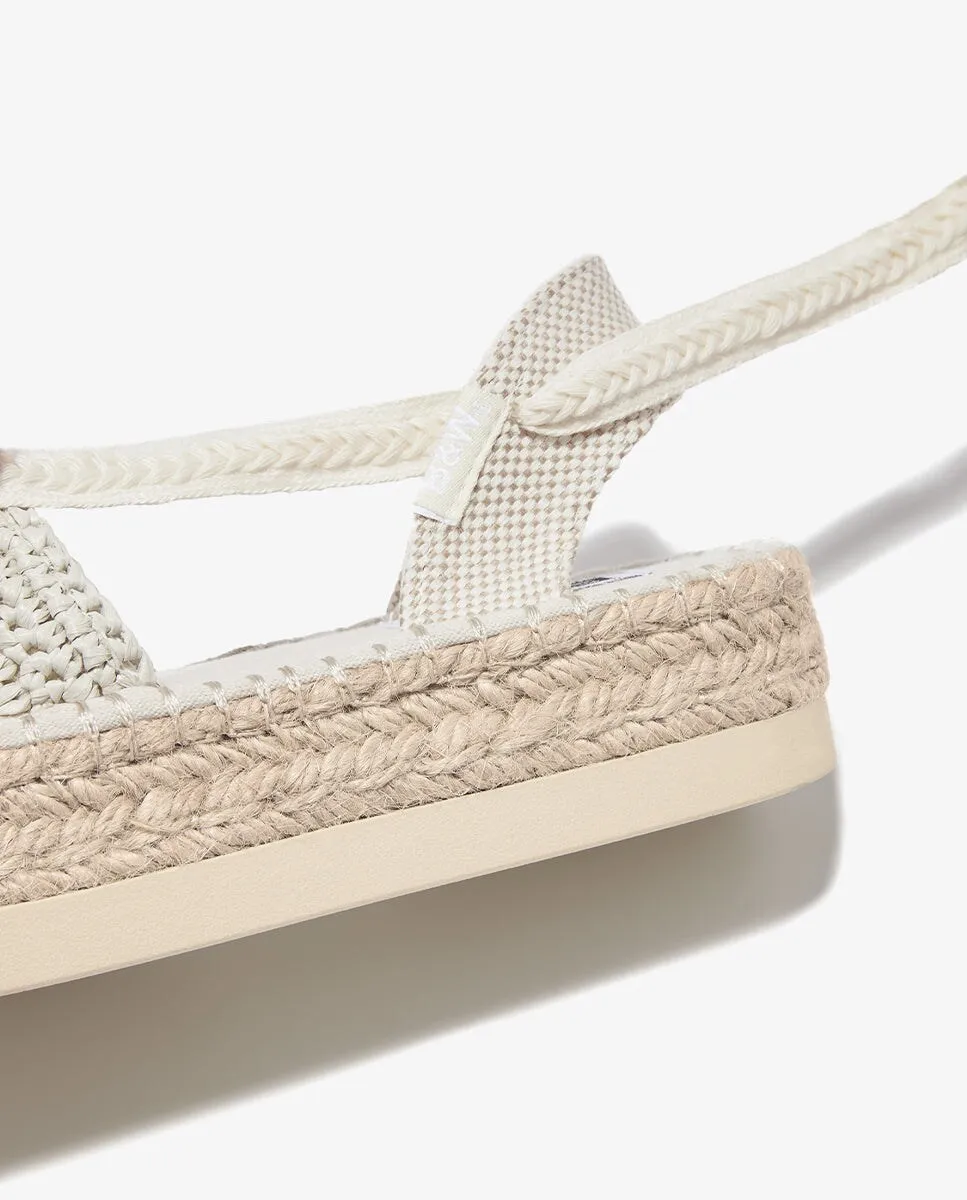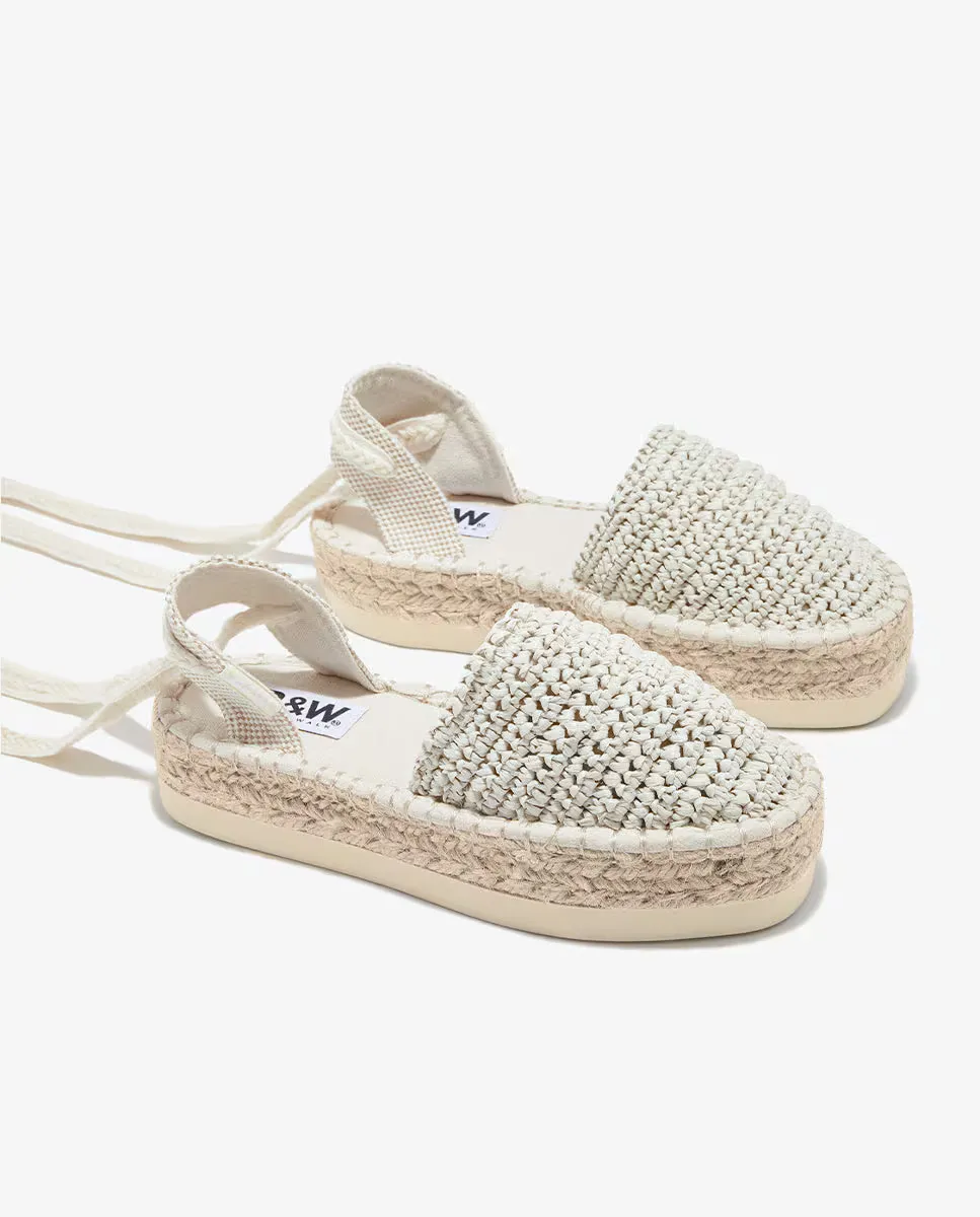 Вы будете выглядеть стильно в холщовых эспадрильях B&W. Данная модель эспадрилий изготовлена ​​из джута и синтетической рафии. У них закрытый носок и джутовая оплетка. Они привязываются к ноге плетеными лентами, которые придают обуви особый шарм. Кроме того, они имеют резиновую подошву, обеспечивающую идеальное сцепление, и текстильную стельку.