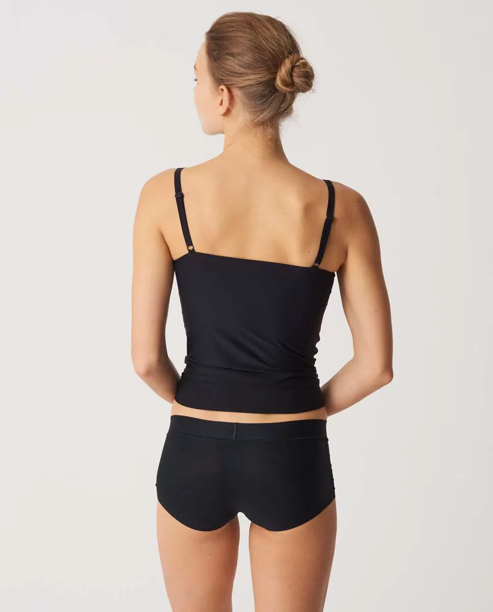 Топ 2-в-1 с эффектом второй кожи, изготовленный из эластичной ткани, которая идеально адаптируется ко всем типам фигуры от 38 до 46 размера. Мягкость ткани обеспечивает оптимальный комфорт и полную невидимость под одеждой. Чашечки предварительной формы обеспечивают лучшую поддержку и комфорт в течение дня. Регулируемые тонкие бретели, которые можно носить прямо или перекрещивая, изменят ваш образ или адаптируются к разным типам одежды.