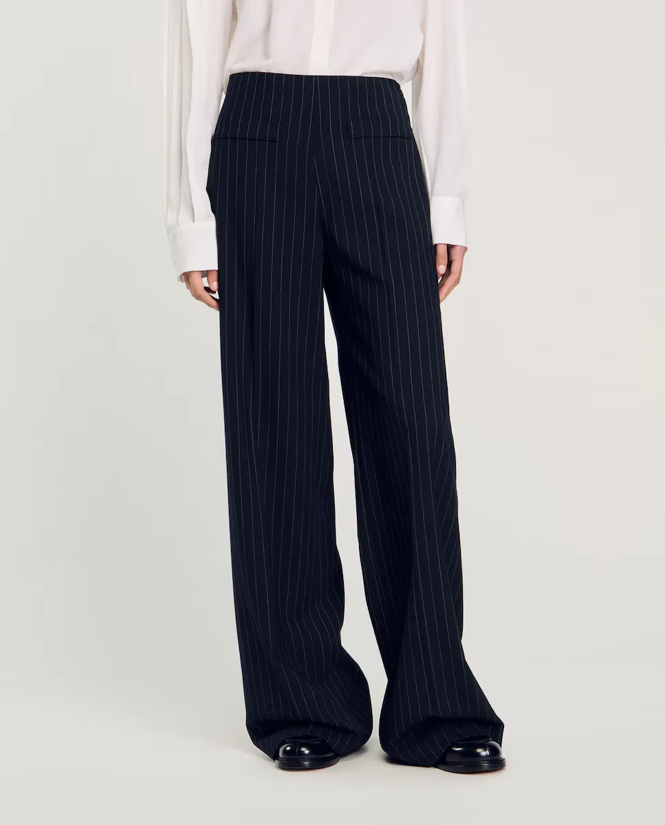 Прямые женские брюки с тонкими полосками Sandro, черный