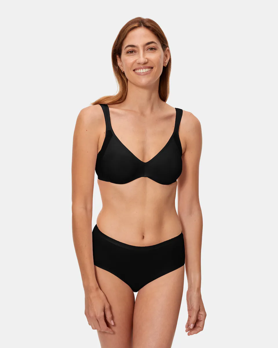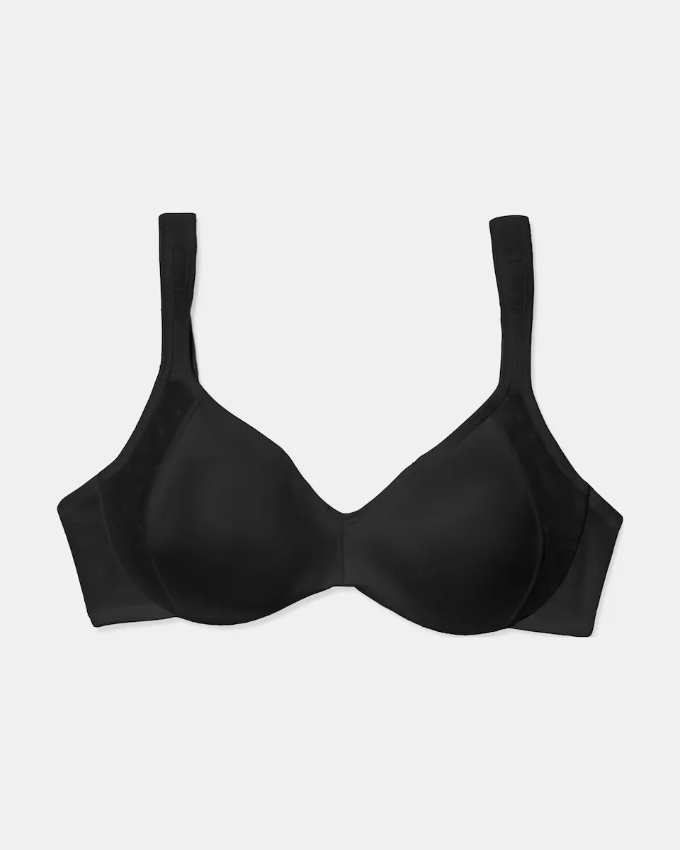 Бюстгальтер-переходник с формованными чашками. Изготовлен из микрофибры с плюмети по бокам. Резинка на верхней части чашки для лучшей посадки. Прострочите по бокам чашек для большей поддержки. Широкие мягкие лямки для большей поддержки и комфорта. П-образная спинка и застежка на два крючка в трех положениях. Внутренняя часть застежки выполнена из мягкой ткани для большего комфорта.