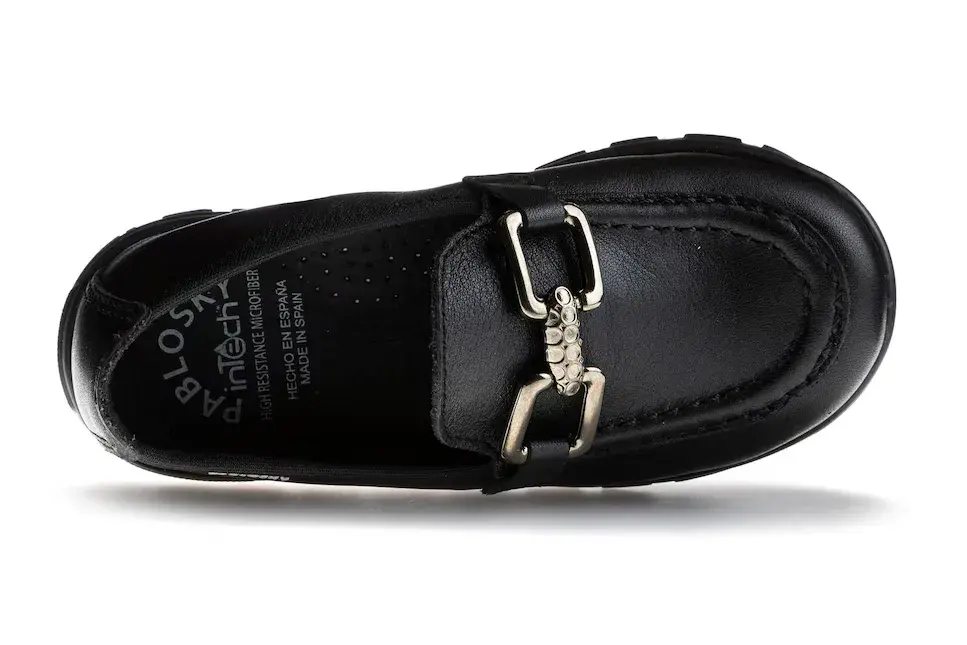 Кожаные мокасины для девочки на резинке Pablosky, черный